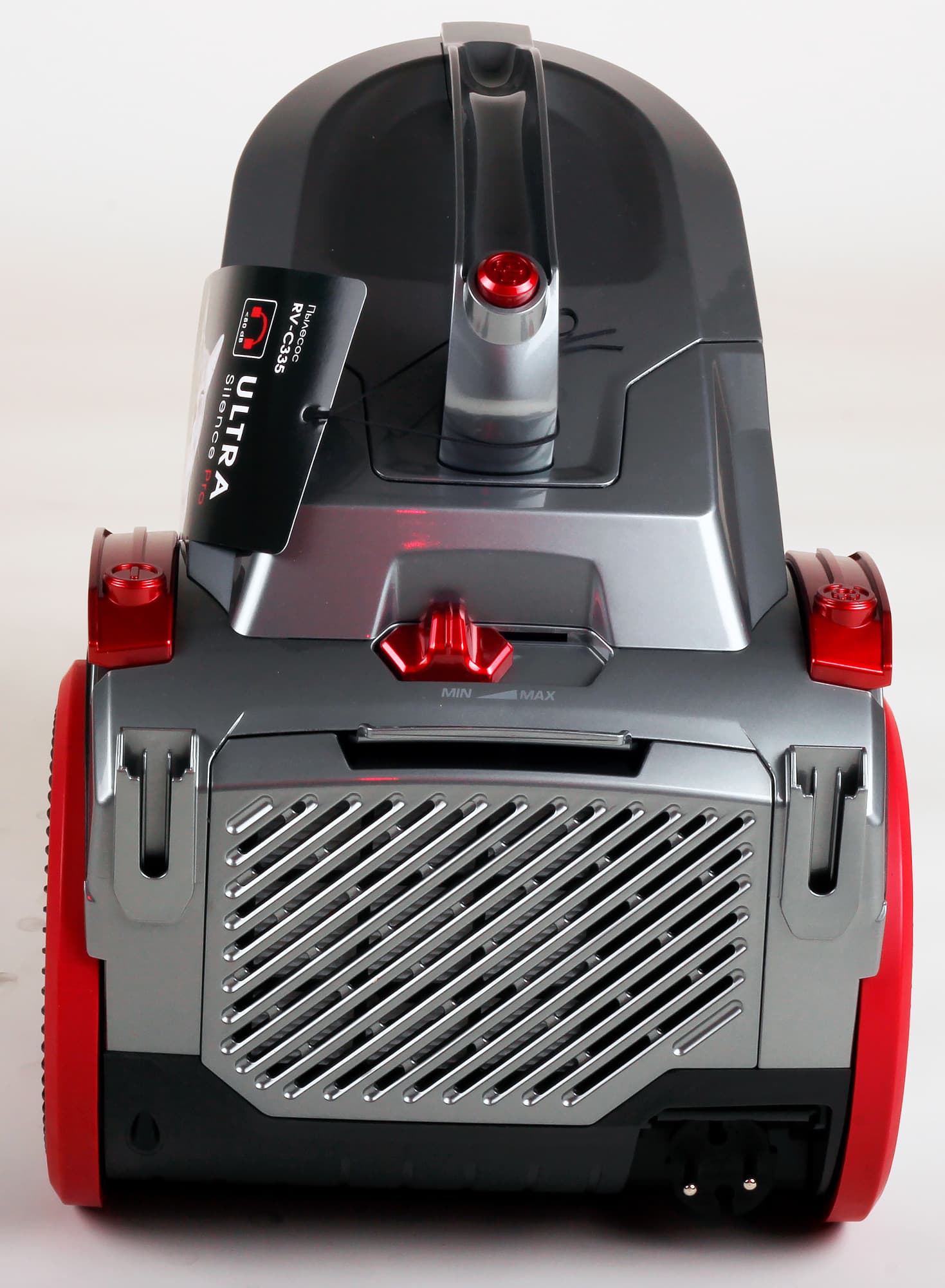 У основания крышки находится четырехпозиционный переключатель мощности — тоже красного цвета. Похоже, к нему придется наклониться не раз в процессе уборки.