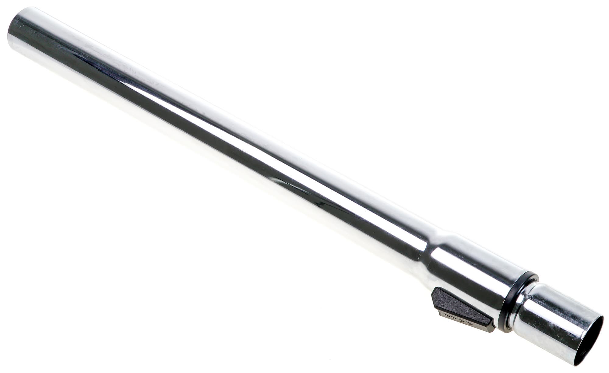 Телескопическая удлинительная трубка пылесоса металлическая, двухсоставная, с пластиковой защелкой-фиксатором.