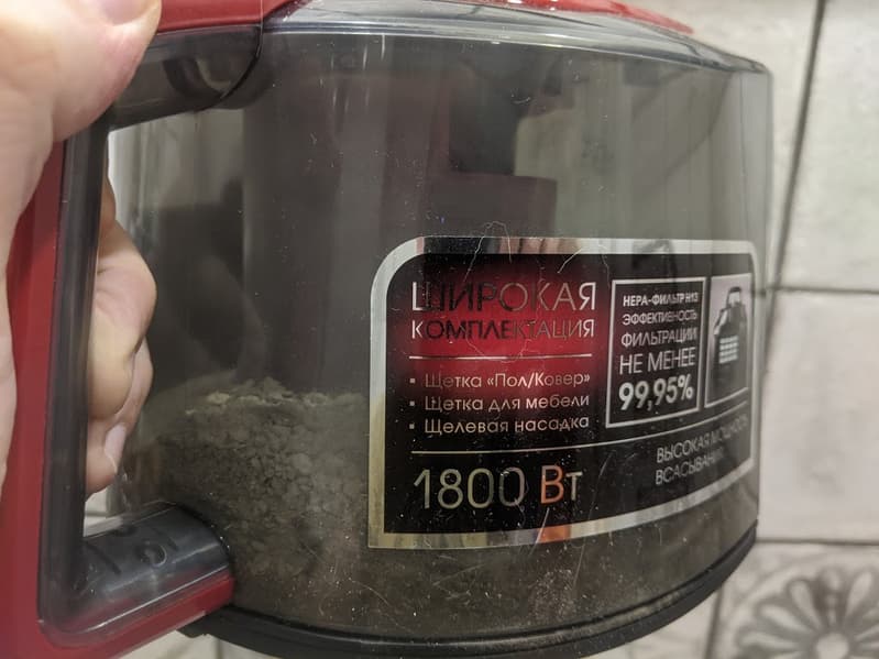 Перед первым включением мы, как предписывал производитель, протерли все детали пылесоса влажной тканью, дождались, пока они полностью высохнут, собрали пылесос и приступили к уборке.