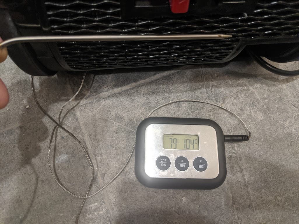 После полутора часов работы на полной мощности температура воздуха у выпускной решетки приближается к 80 °C. Термощуп, просунутый сквозь решетку до упора, показал 86 °C на поверхности HEPA-фильтра.