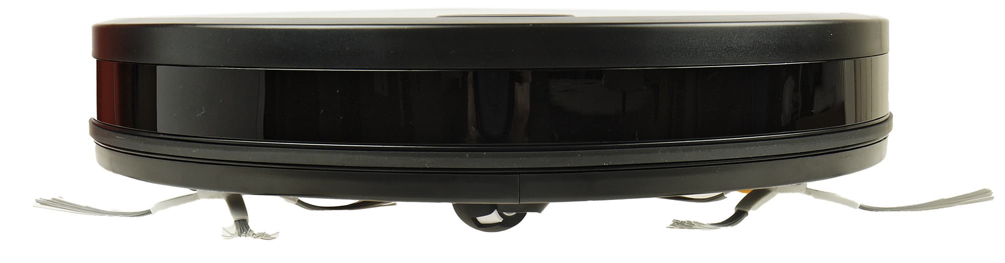 После распаковки и беглого осмотра мы выяснили, что конструкция у нашего подопытного робота-пылесоса вполне стандартна. Корпус у прибора пластиковый, матовый. Черный пластик выглядит строго и серьезно: прибор смотрится стильно и дорого (при том, что по факту его скорее стоит отнести к верхнему уровню бюджетных моделей, чем к премиальному сегменту).