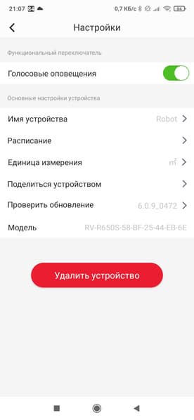 Все описанные выше операции прошли без каких-либо проблем или сложностей. Пылесос уверенно определился и привязался к смартфону, после чего мы получили доступ к его настройкам.