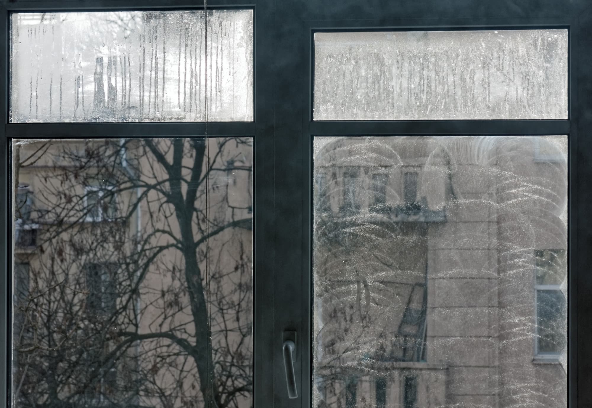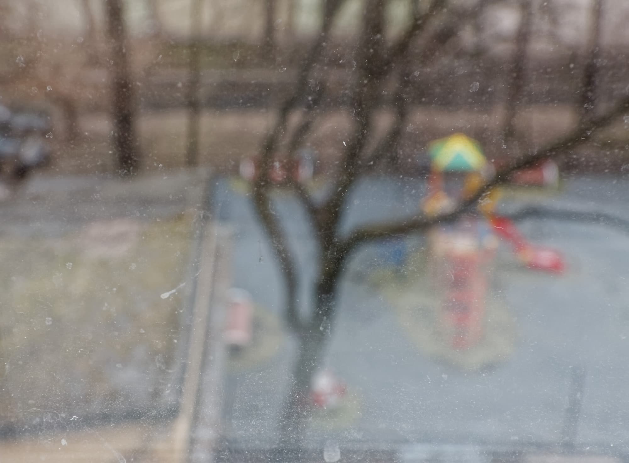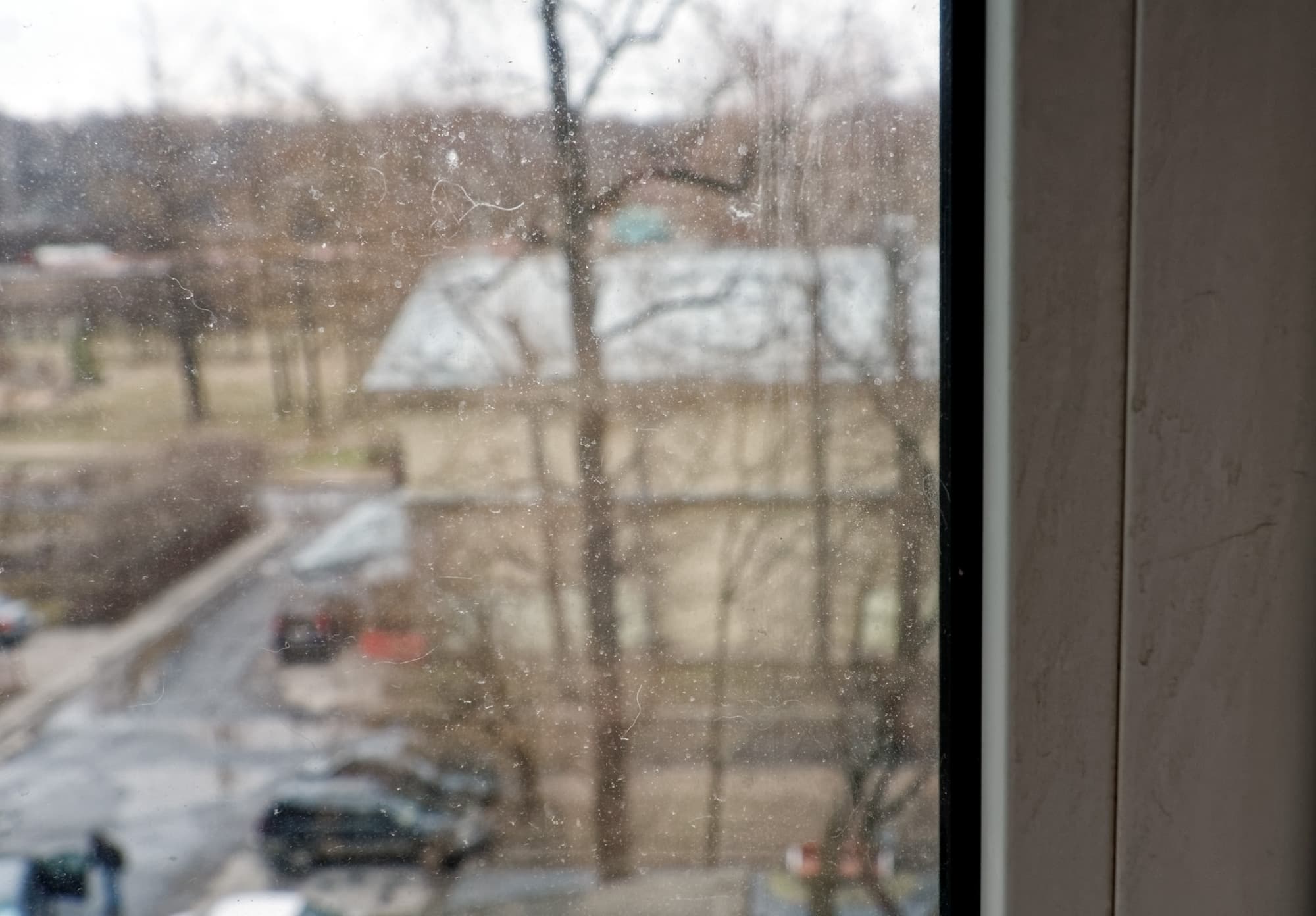 Наше второе тестовое окно располагалось в том же доме, но выходило во двор. Оно также простояло грязным около 6 месяцев, однако степень его загрязнения оказалось значительно ниже. Погода на этот раз оказалась пасмурной, поэтому загрязнение на фотографиях видно хуже. Вот так окно выглядело изначально.