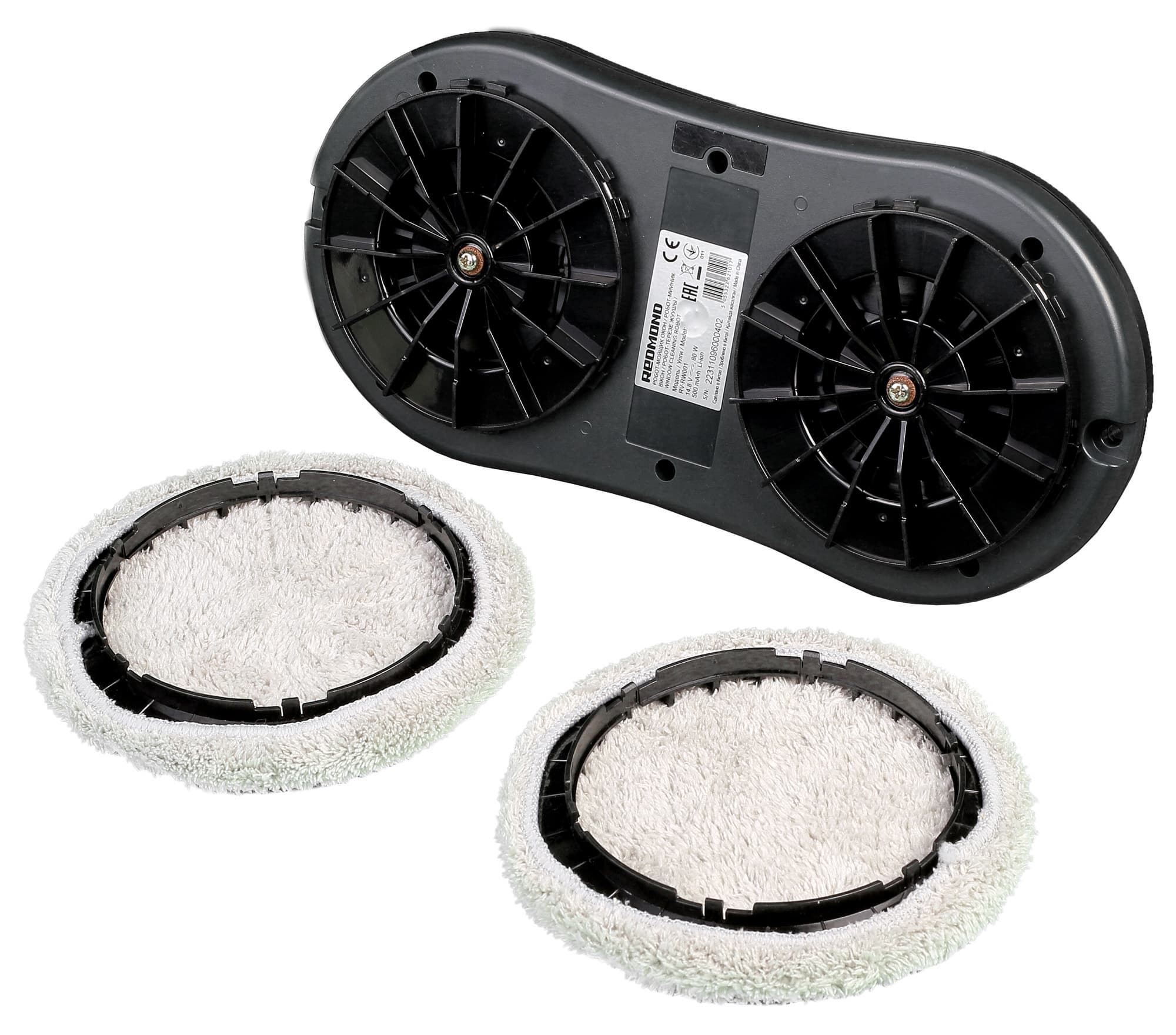 Наконец, последнее действие — установка салфеток (мопов) из микрофибры на специальные кольца и фиксация колец на держателе — совместив выступы на съемном кольце с пазами на держателе (кольца фиксируются с легким нажатием и характерным щелчком). После закрепления страховочного троса робот готов к работе.