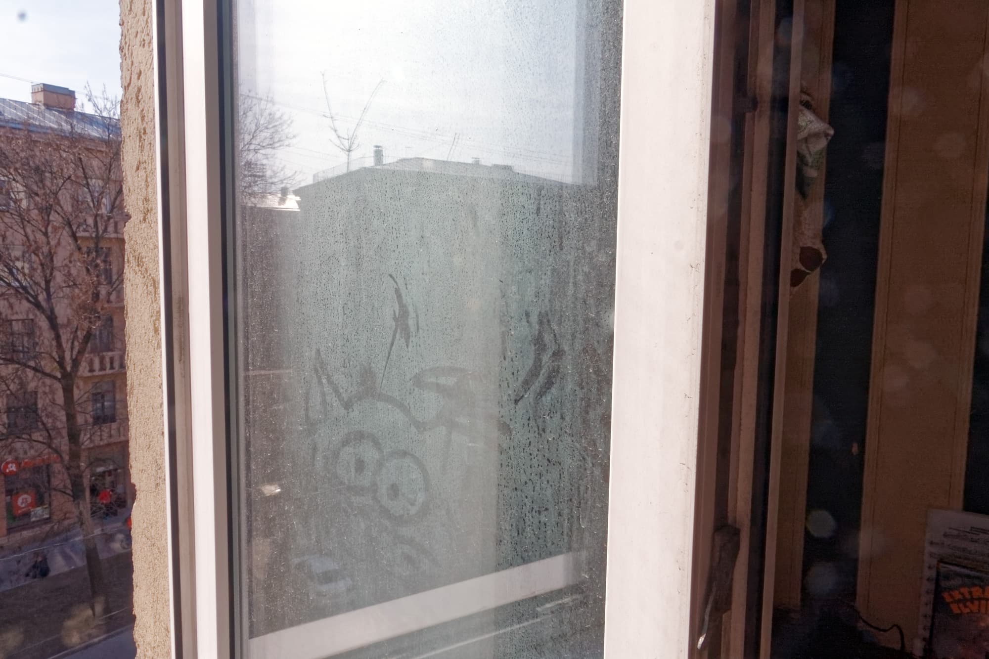 Для того, чтобы наши читатели смогли оценить «масштаб бедствия», сначала мы сфотографировали грязное окно. Как видно на фото, на нем можно было даже рисовать пальцем.