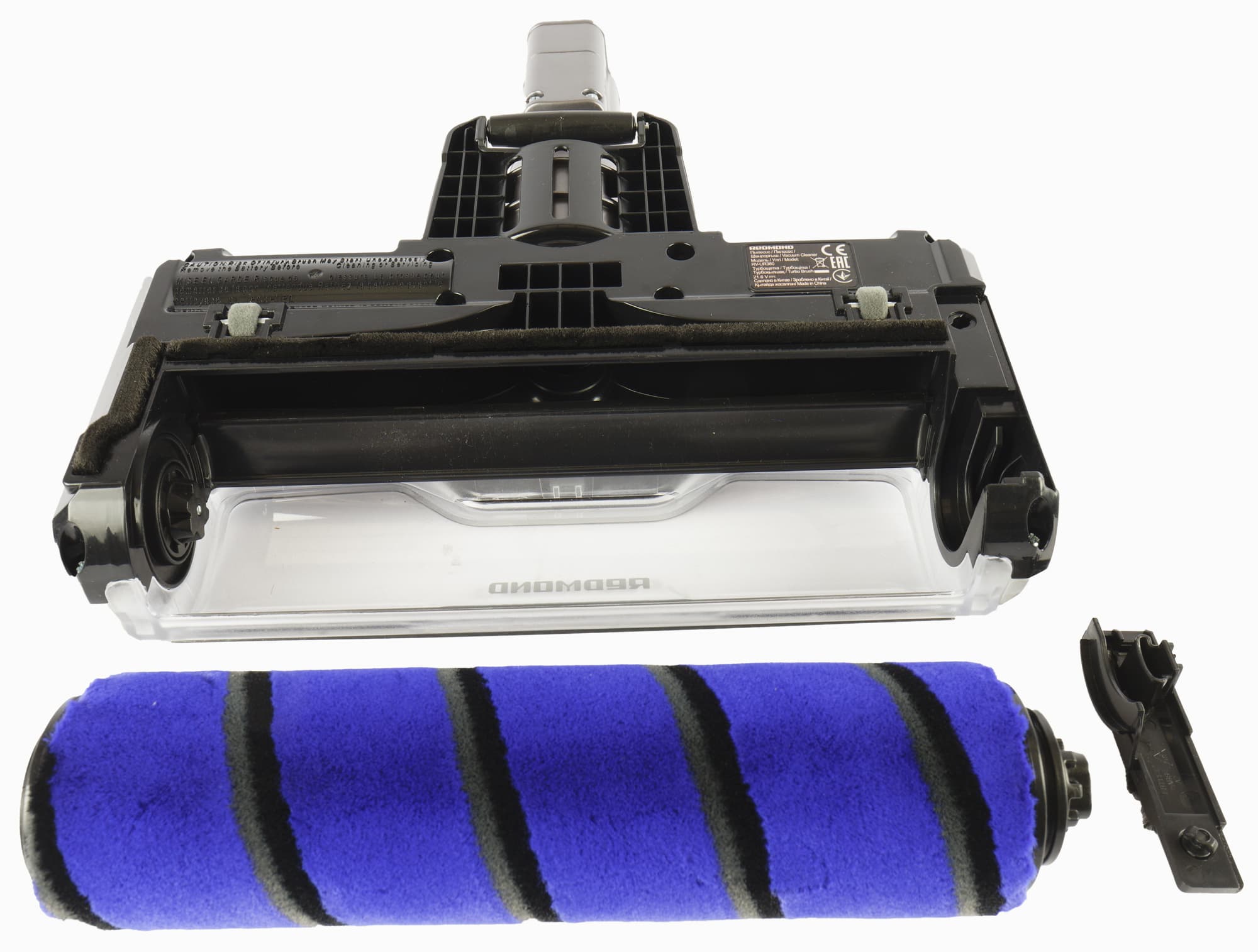 В комплект входит единственная электронасадка — для уборки пола. Конструкция шарнира позволяет ей изгибаться на 90° вправо и влево и приблизительно на 100° в вертикальной плоскости. Верхняя часть из прозрачного пластика позволяет контролировать вращение синего велюрового ротора.