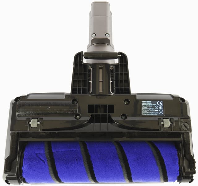 Синий светодиодный дисплей отображает текущую мощность всасывания и выбранный режим вращения напольной щетки. В верхней части у него трехсекционный индикатор уровня заряда аккумулятора.