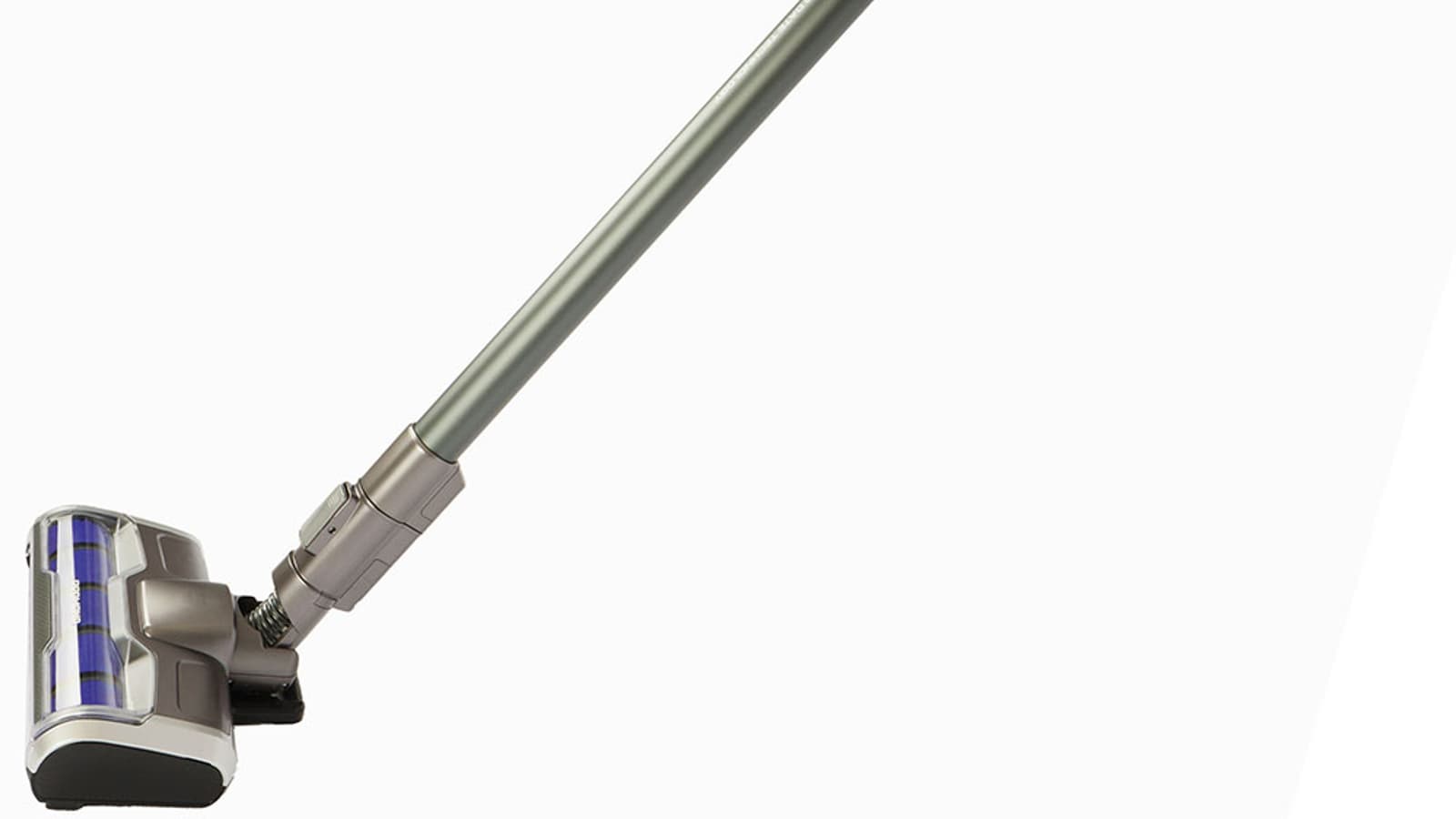 Баланс у прибора отличный, он удобно лежит в руке, а управлять им просто. Насадка легко изгибается под прямым углом относительно трубки и вперед-назад, и вправо-влево. Такая подвижность помогает устройству быстро собирать мусор из самых труднодоступных углов. Небольшая же высота электрощетки делает комфортнее уборку под мебелью.