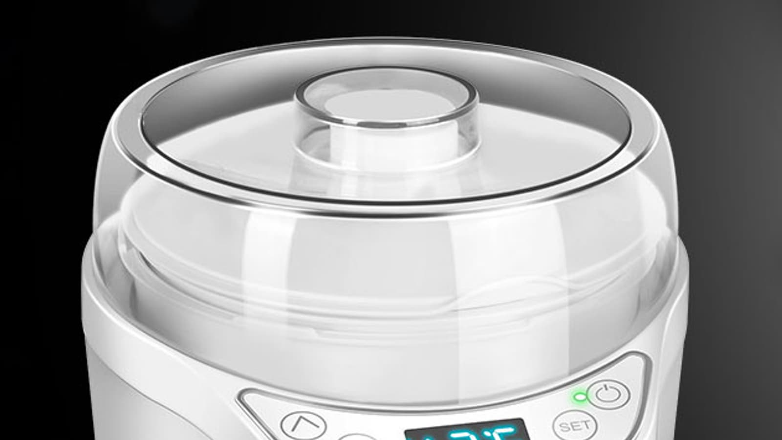 Чтобы увидеть, в каком режиме работает прибор, надо нажать «Set». По окончании программы йогуртница выключится автоматически, однако ее работу в любой момент можно прервать вручную, нажав и подержав кнопку «Вкл.».