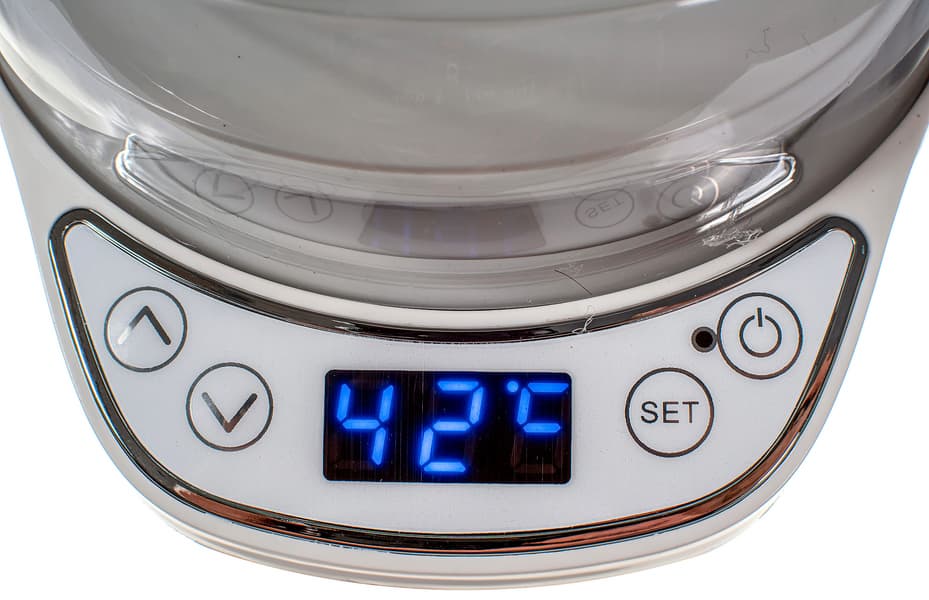 Максимальная отмеченная нами мощность в этом режиме составила 158 Вт, а расход энергии вылился в 0,099 кВт·ч: йогуртницу можно назвать достаточно экономичным прибором.