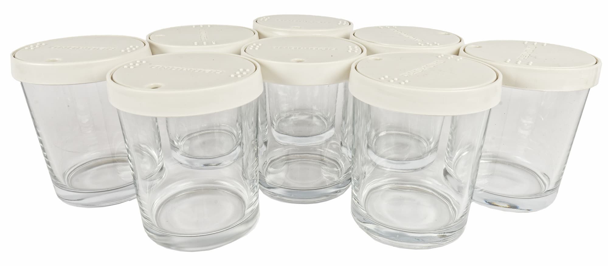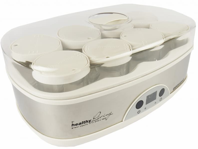 Она очень элегантна, эта компактная, овальной формы невысокая йогуртница, позволяющая готовить порционно, а не в единой емкости. Очень аккуратная, выполненная в серебристо-белых тонах, вмешает в себя восемь баночек общим объемом почти в 1,5 кг продукции. Баночки сделаны из плотного стекла, которое легко отмывается. Каждая оснащена удобной крышкой с возможностью ручной датировки: часть крышки вращается, позволяя выставить нужную дату: 1, 2, 16 или 25.