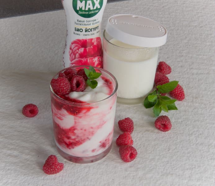 Йогурт с малиной из фермерского молока заквашенного на йогурте Bio Max