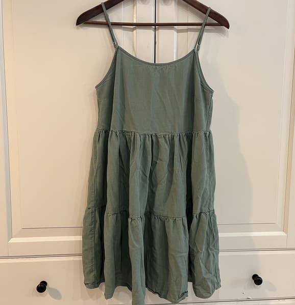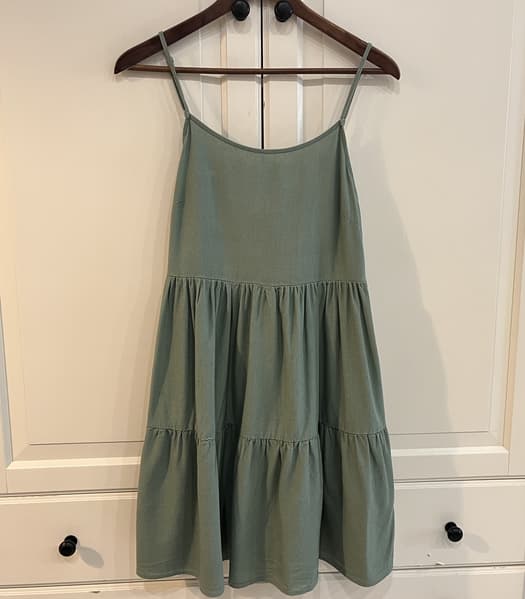 Платье, состоящее на 30% изо льна и на 70% из вискозы, пришло в «товарный вид» за 7 минут. Пару раз мы воспользовались и паровым ударом, чтобы справиться с особо глубокими заломами на ткани.