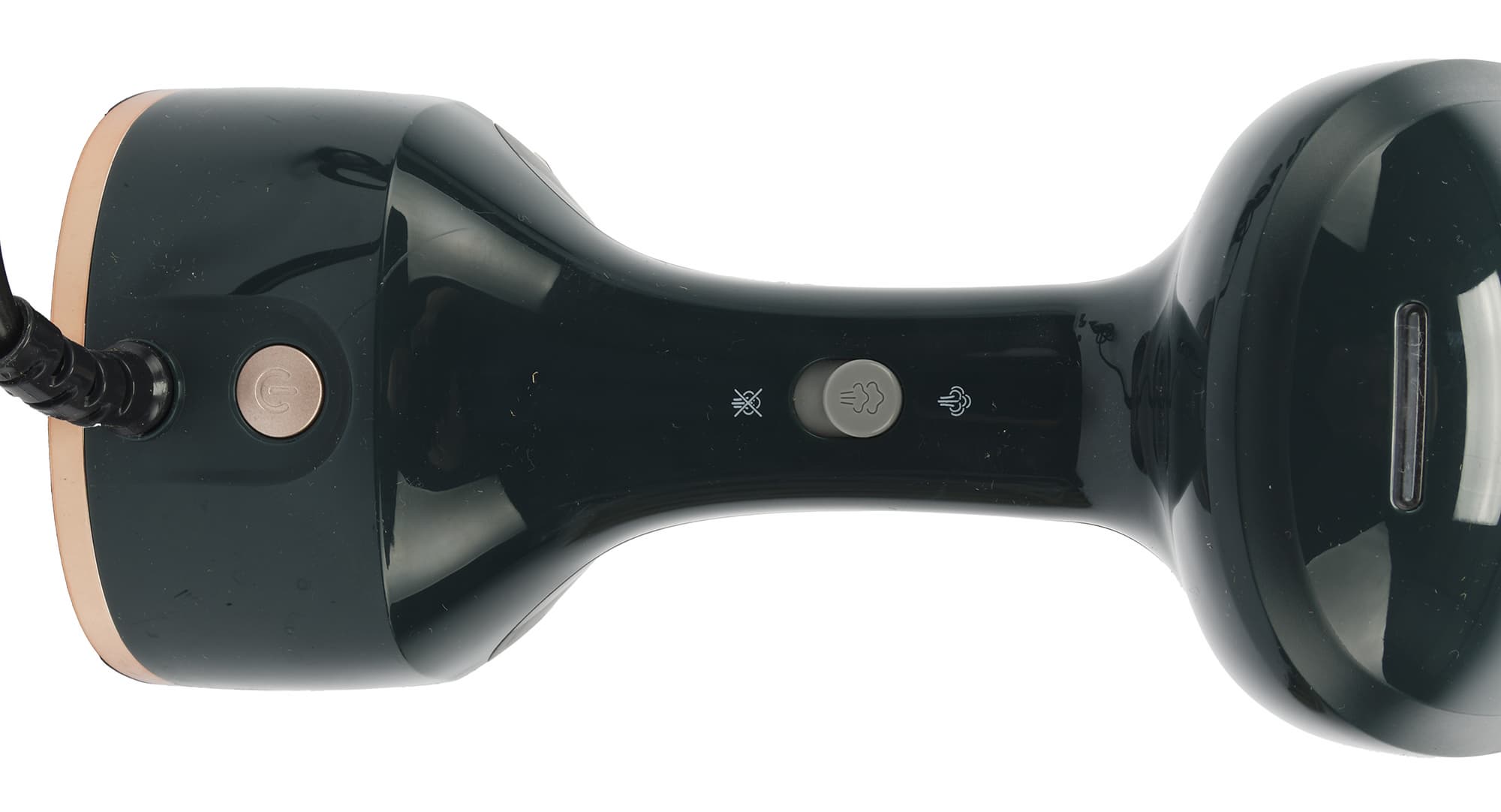 Прибор удобно лежит в руке. Его вес с полным резервуаром (без учета шнура) составляет 1,3 кг — это стандартный показатель для такого типа отпаривателей. При длительном вертикальном использовании вес ощущается, но рука не перегружается.