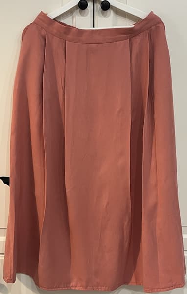 Сильно помятая и состоящая на 95% из натуральной ткани юбка полностью разгладилась за 3 минуты. Здесь мы вновь прибегли к комбинированному отпариванию, но не из-за сложности ткани, а для того, чтобы сделать четкие линии от защипов.