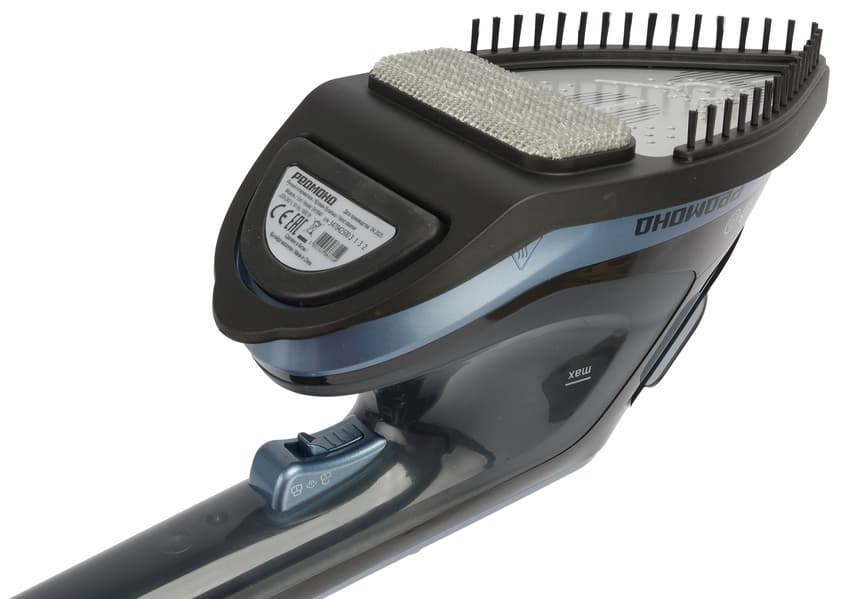 Производитель обещает постоянную подачу пара до 45 г/мин с выбросом пара на 25—50 см и нагревание за 25 секунд. Парового удара у данной модели нет, зато режимов подачи пара два — для тонких и для плотных тканей. Дополнительно имеется насадка-щетка для сбора шерсти и пыли с одежды.