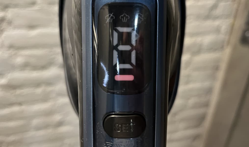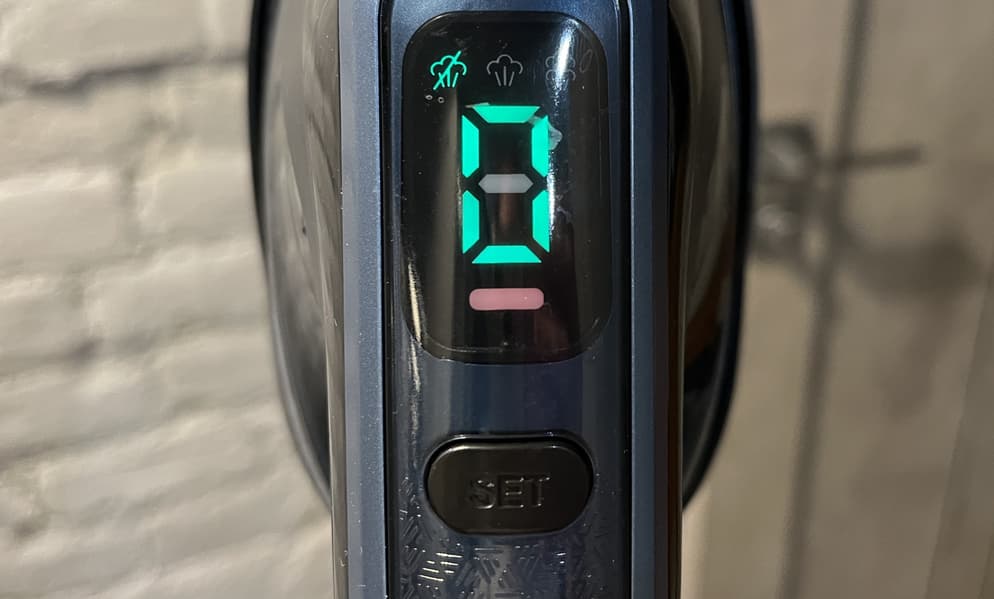 Ручка удобно ложится в руку и имеет объемный симпатичный орнамент, который препятствует скольжению. Помимо кнопки включения на ней также расположен небольшой светодиодный дисплей.