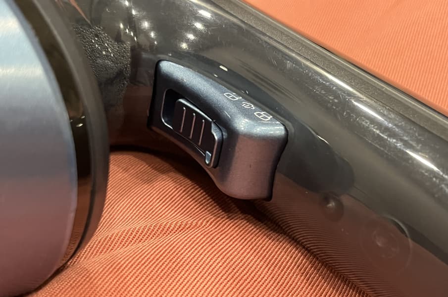Особенностью кнопки подача пара является механический фиксатор положения кнопки — чтобы не зажимать ее, можно легким движением установить фиксатор в нижнее положение и он сделает это за вас. Это действительно удобно и тоже снимает дополнительное напряжение с кисти.