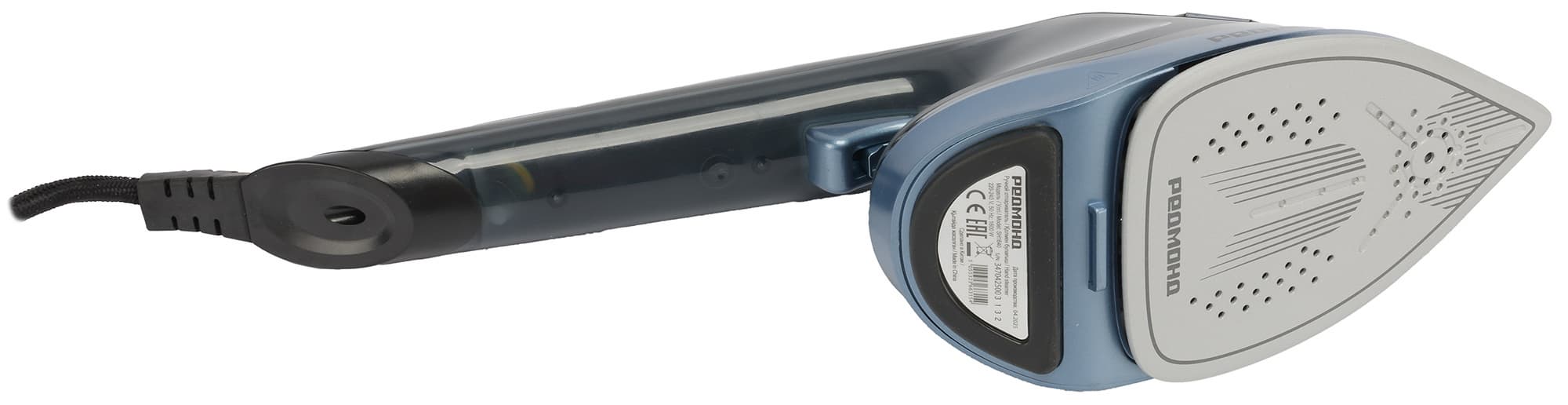 Сетевой шнур имеет более чем достаточную длину — 1,7 метра. Такой протяженности провода хватит для комфортного перемещения вокруг гладильной доски, подключения к дальним розеткам и отпаривания висящих штор. В месте крепления к корпусу он защищен кожухом из плотной резины.