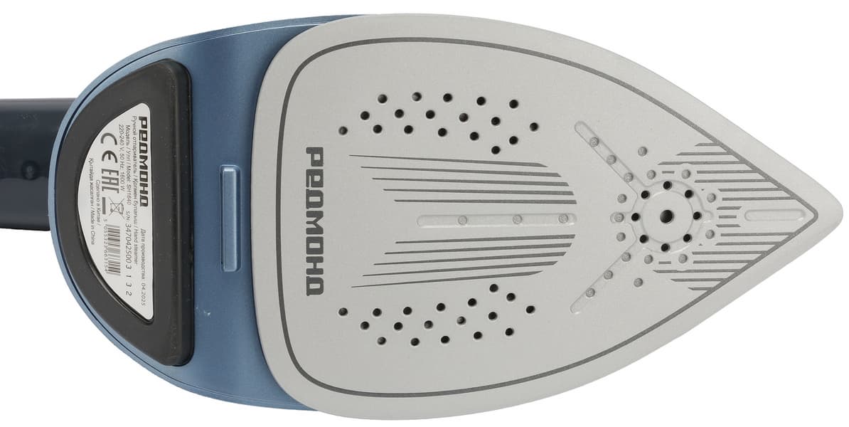 Рабочая поверхность утюжка — идеально гладкая металлическая пластина с керамическим покрытием. Зауженная вершина имеет узкую округлую форму. Отверстия выхода пара расположены по бокам и в верхней части.