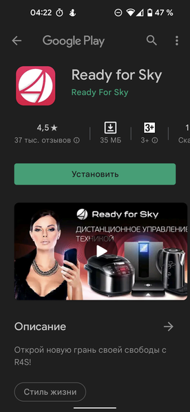 Как уже упоминалось, для работы со смартфона Redmond предлагает давно знакомое нам приложение Ready for Sky Это целая экосистема, созданная компанией для огромного количества бытовой техники: кухонных приборов, товаров для здоровья, гаджетов для умного дома и многого другого.