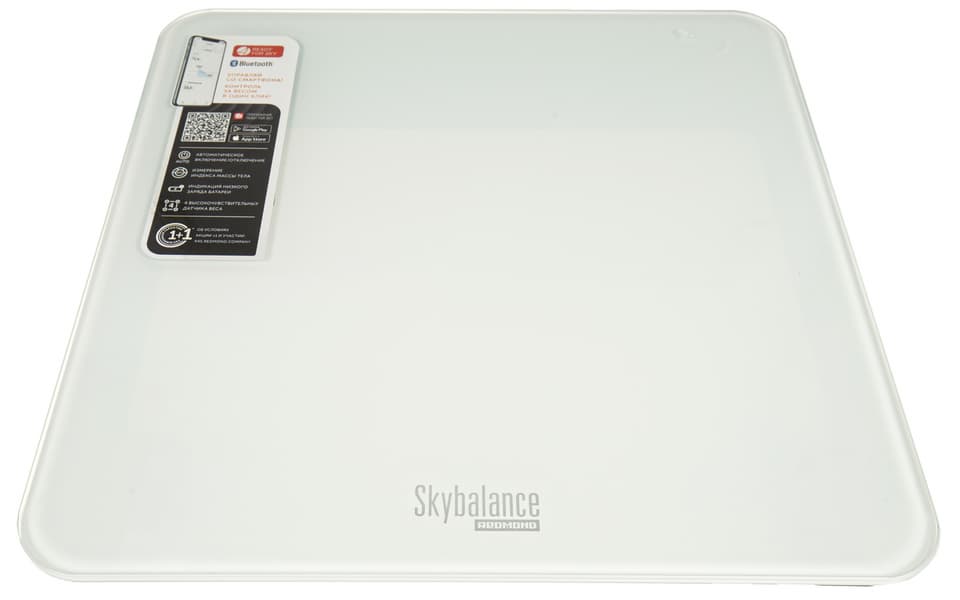 Верхняя часть весов двухслойная: панель из прозрачного многослойного закаленного стекла и молочно-белая нижняя подложка. Декорирована эта модель только логотипом серии SkyBalance.