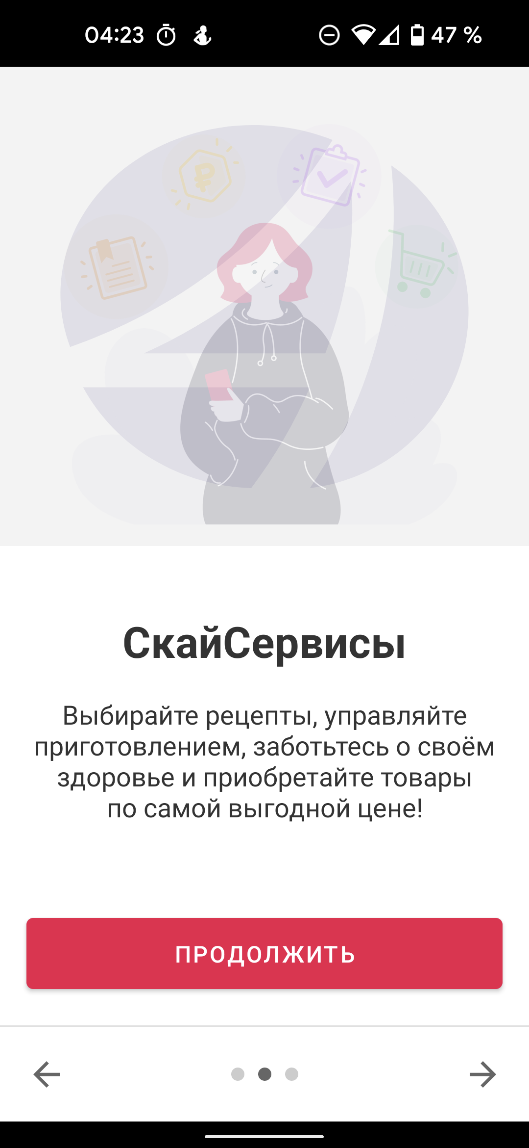 После успешной регистрации приложение коротко рассказывает о своих возможностях. Пропустить саморекламу можно в любой момент.