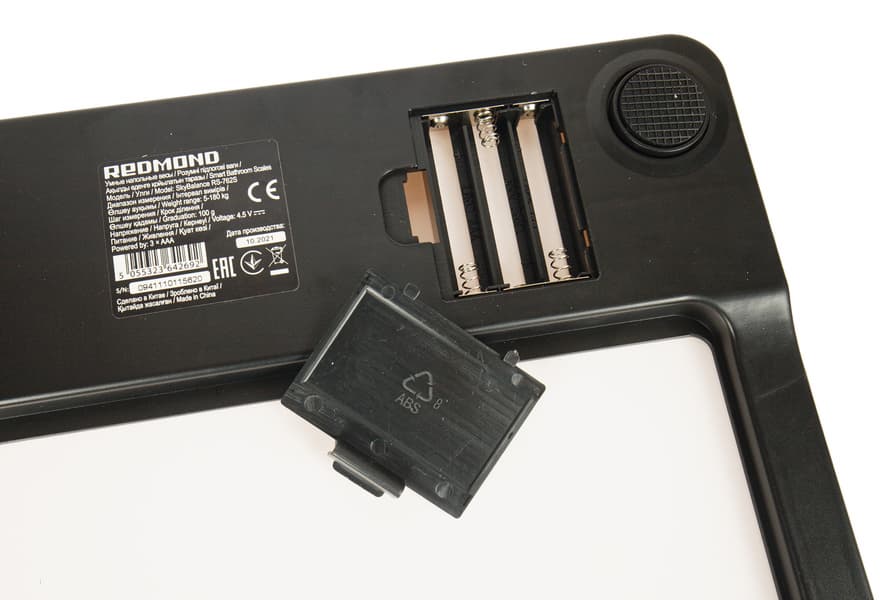 Под панелью находится П-образный корпус. В нем расположены электронная схема весов и отсек для батареек.