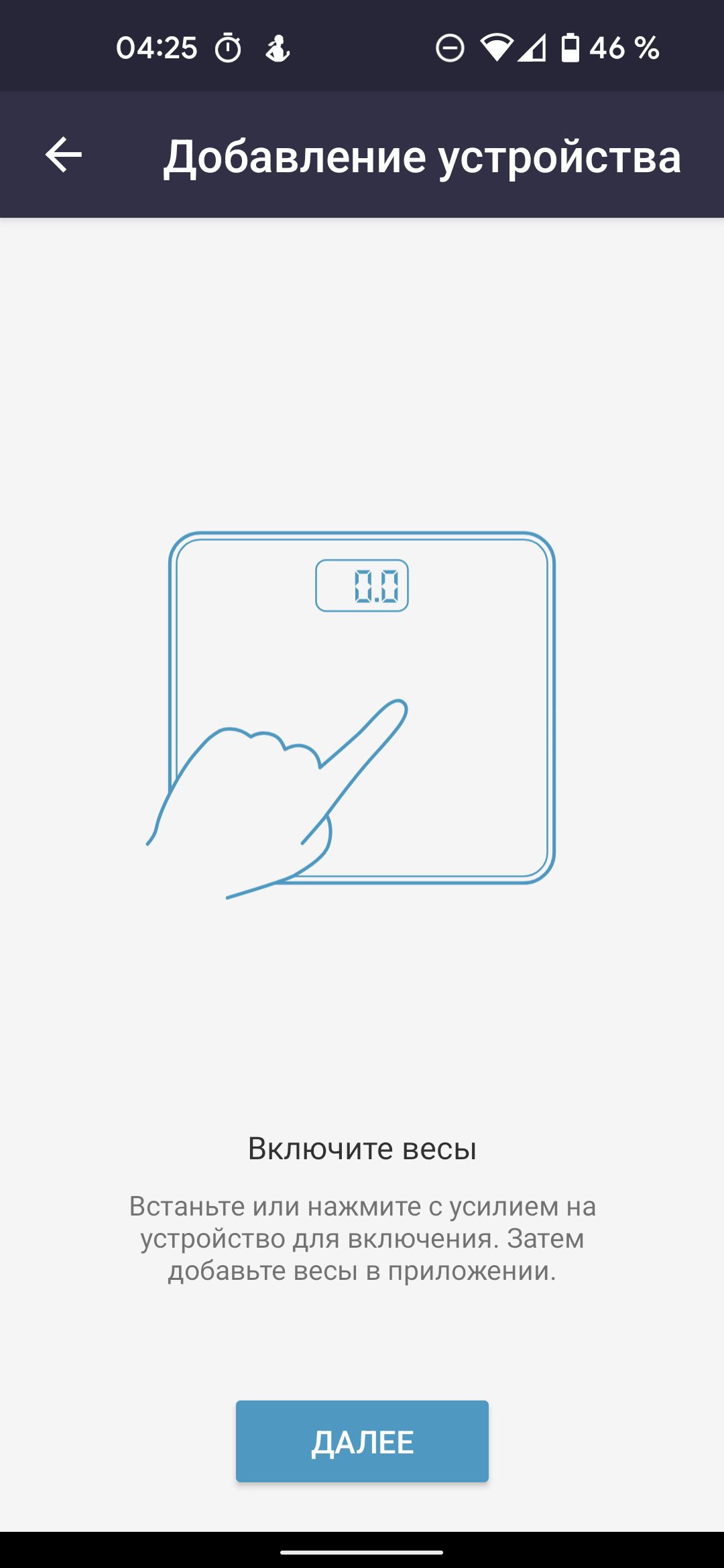 Для подключения весов требуется вывести их из спящего режима. Для этого достаточно с усилием надавить на панель или встать на нее.