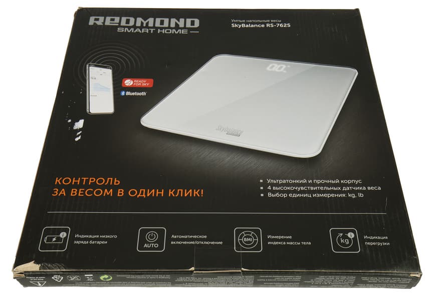 Redmond SkyBalance RS-762S оказались весьма похожи на предыдущую модель линейки напольных весов этого производителя, рассмотренную нами не так давно. От нее они отличаются только цветом панели и незначительными деталями корпуса. Выбор между моделями сводится, таким образом, к цветовым предпочтениям. Белая платформа показалась нам более практичной: на таком фоне менее заметны неизбежные отпечатки пальцев.