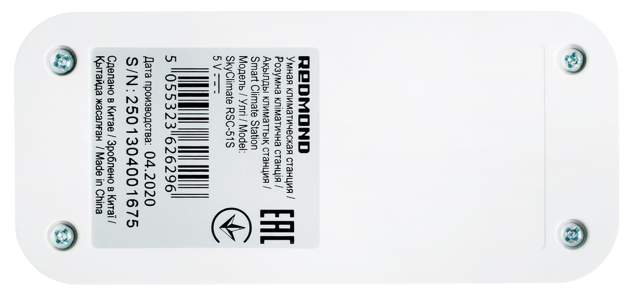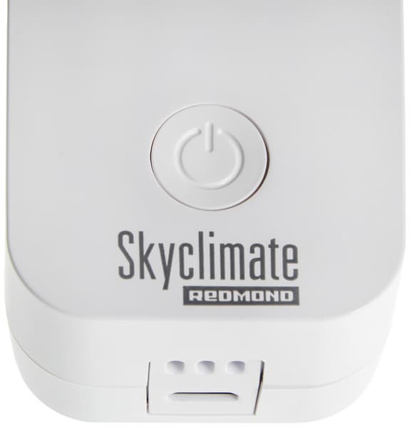 Большинство устройств Redmond Ready for Sky собирается в типовом корпусе единого стандарта. Наша климатическая станция не исключение: это параллелепипед со скругленными углами, выполненный из белого пластика.