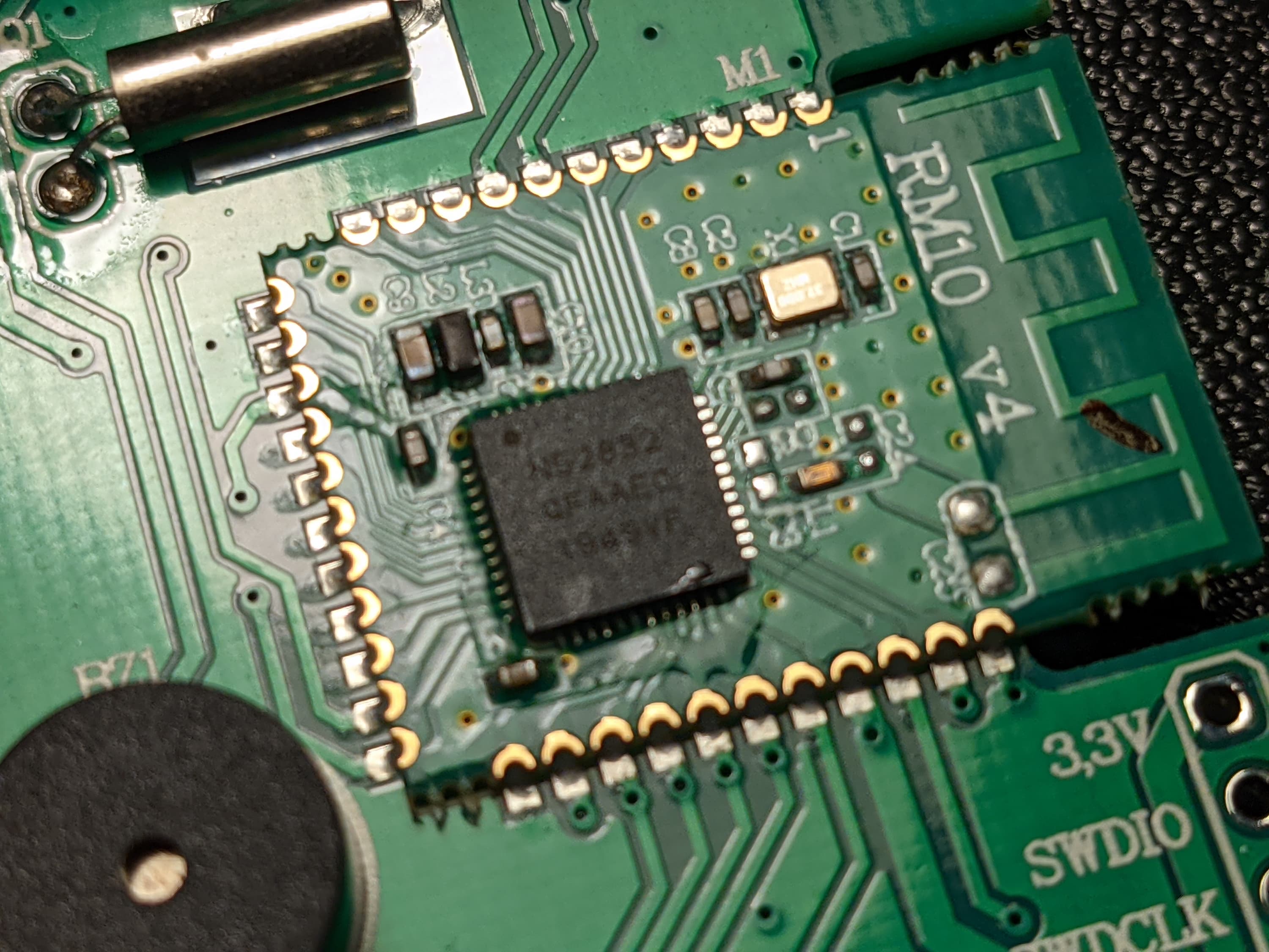 Сердцем устройства является чип nRF52832 (Nordic Semiconductor). Это однокристальная система на процессоре ARM Cortex-M4F, которая отличается невысоким энергопотреблением и неплохими коммуникационными возможностями. Элементная база климатической станции предназначена и для Bluetooth 5.2, но текущая версия встроенного программного обеспечения позволяет работать только на четвертой версии протокола.