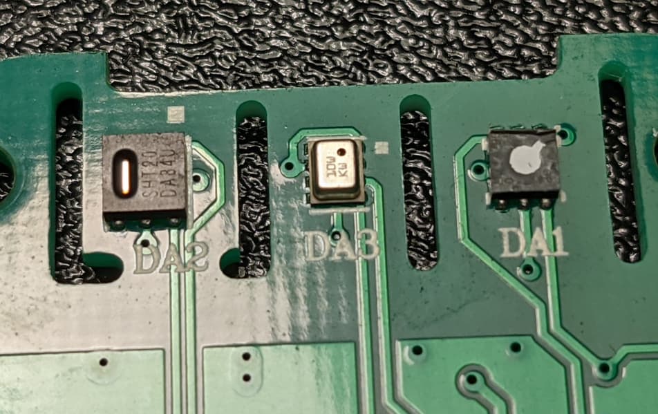 Аппаратных сенсоров у SkyClimate RSC-51S три. Первый из них, SHT20, — популярный датчик влажности и температуры, отличающийся неплохой точностью измерений и низким потреблением тока. Рядом с ним расположен датчик давления, который мы, к сожалению, не смогли идентифицировать. Последний сенсор — Sensirion SGP30, который ставят в системы контроля качества воздуха.