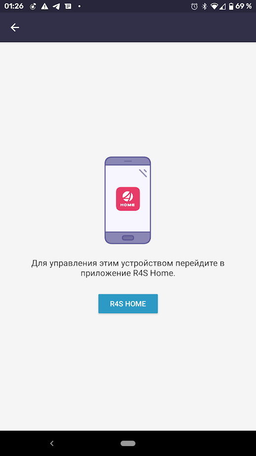 Приложение, однако, сообщило нам, что для работы с пультом требуется установить другое ПО: R4S Home от того же разработчика. Эта путаница свойственна продуктам Redmond, и мы уже привыкли к тому, что информация в инструкции и на упаковке товаров может быть неверной или устаревшей.
