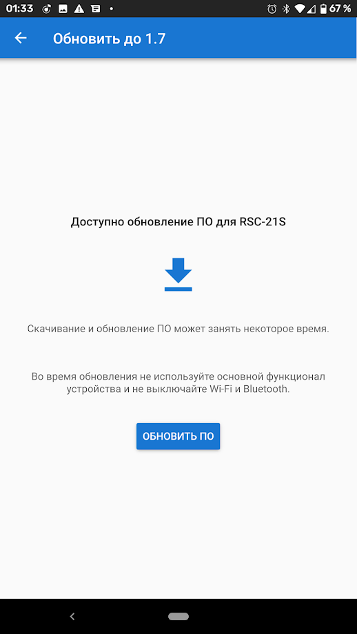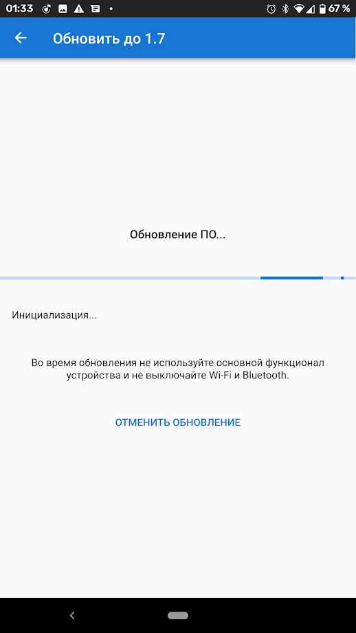 Скачивание и обновление прошивки длилось около семи минут. После завершения обновления можно начинать работу с пультом.
