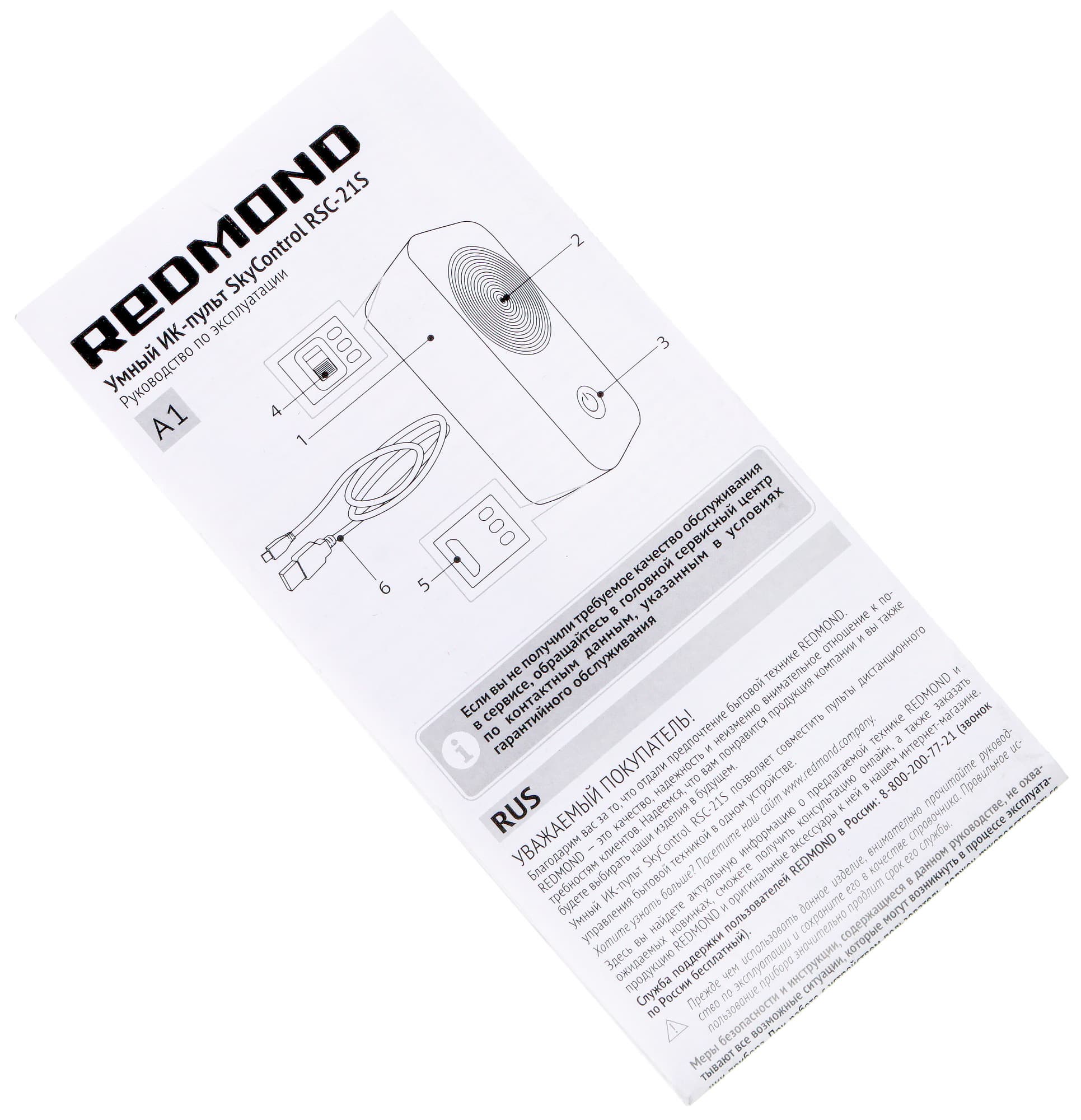 Руководство по эксплуатации Redmond SkyControl RSC-21S — это лист довольно тонкой бумаги, сложенной гармошкой. Шрифт мелкий, пользоваться не очень удобно. Проще скачать PDF-версию с сайта производителя — ее, по крайней мере, можно увеличить или редактировать.