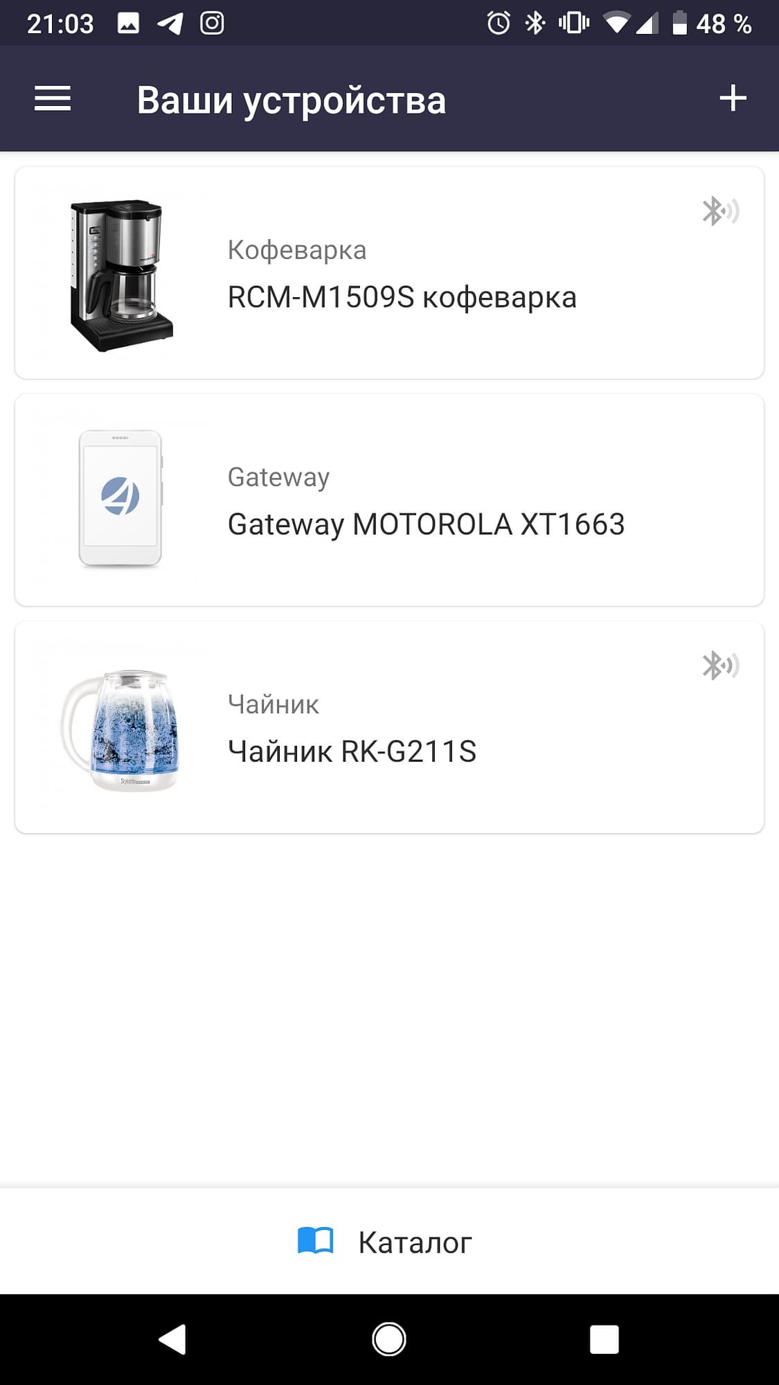 После этого вы сможете через интернет подключаться к гейту с того смартфона, на котором стоит Ready for Sky, гейт подключится к чайнику по протоколу Bluetooth и передаст прибору команду с управляющего смартфона.