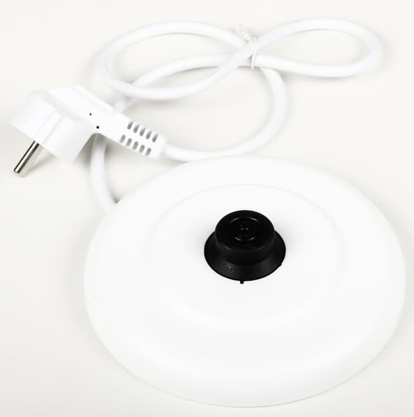 На базе расположена контактная группа, которая обеспечивает питание нагревательного элемента чайника. База устойчива, не скользит на поверхности, и чайник на ней держится вполне надежно. Снимается с базы и ставится обратно чайник легко, без усилий.