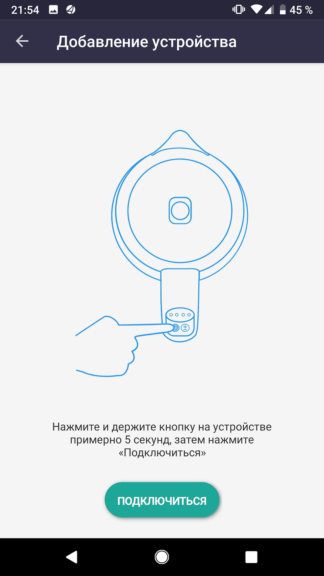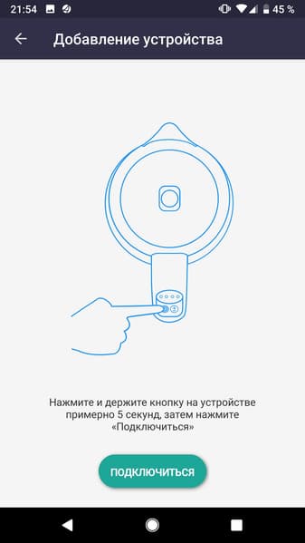 Когда чайник будет обнаружен, надо нажать на строчку с его названием — откроется страница подключения. Проверьте, чтобы в смартфоне был включен Bluetooth, и нажмите указанную в приложении кнопку (питания) секунд на пять. Чайник издаст сигнал, после чего кнопку можно отпустить, зато нажать кнопку «Подключиться» в приложении.