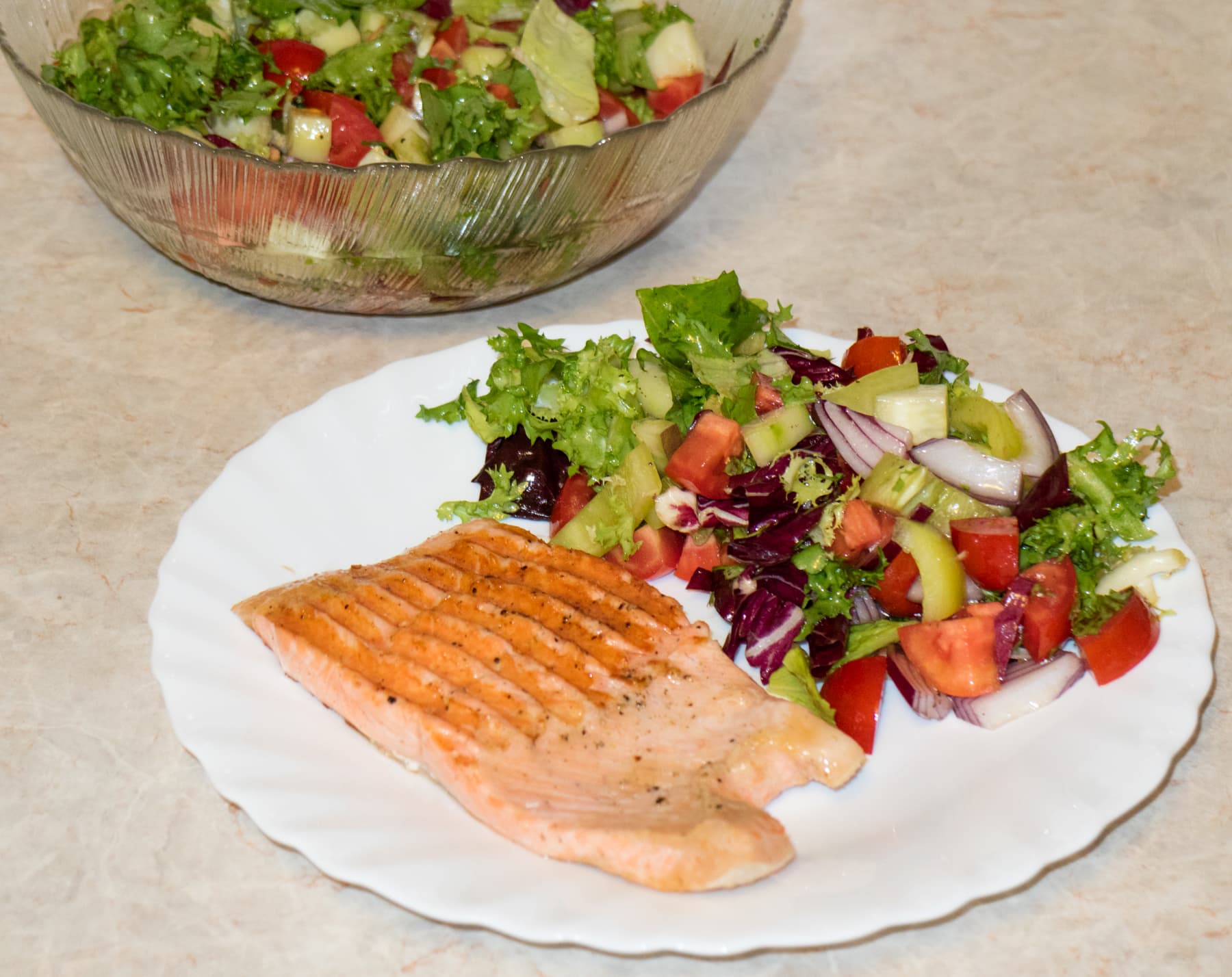 За указанное время рыба прожарилась снаружи и осталась сочной и нежной внутри. Приготовились даже фрагменты, не соприкасающиеся с верхней панелью.