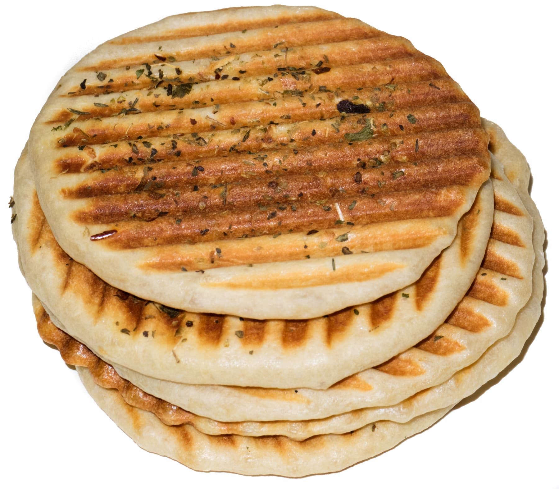 Установили регулятор температуры в положение «III». Готовности лепешки достигли через 7 минут против трех рекомендуемых книгой рецептов. Лепешки получились интересными по вкусу, немного хрустящими сразу после жарки, мягкими и слегка воздушными через некоторое время. Рецепт рекомендовал посыпать лепешки перед жаркой крупной морской солью, но тесто, на наш вкус, было достаточно соленым, поэтому мы решили сдобрить его ароматными травами вместо соли.