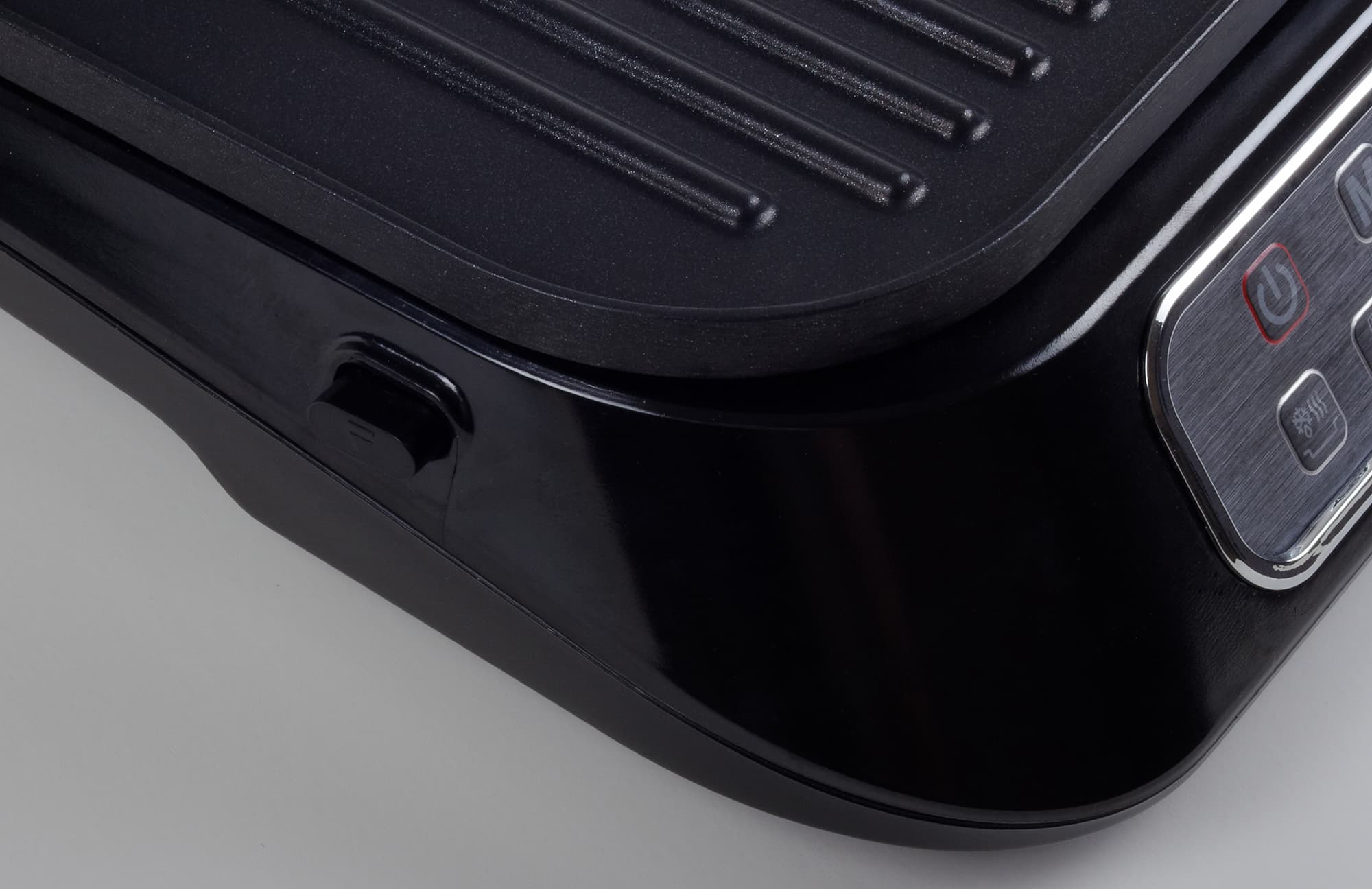 У гриля есть автоматический режим отключения, но действует он только на предустановленных режимах. Также есть автоматический режим защиты от перегрева, но довести прибор до такого состояния, чтобы он включился, мы так и не смогли.