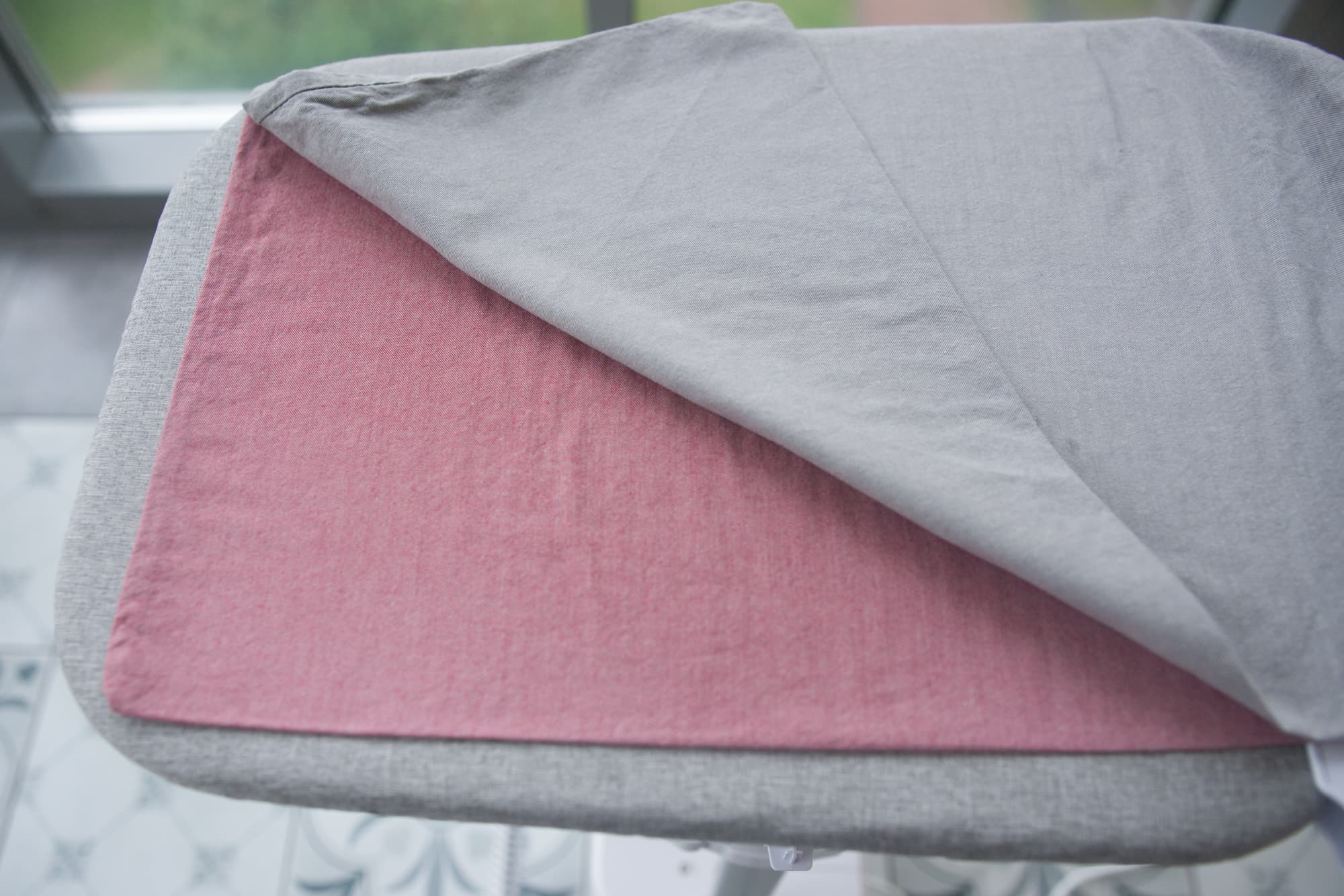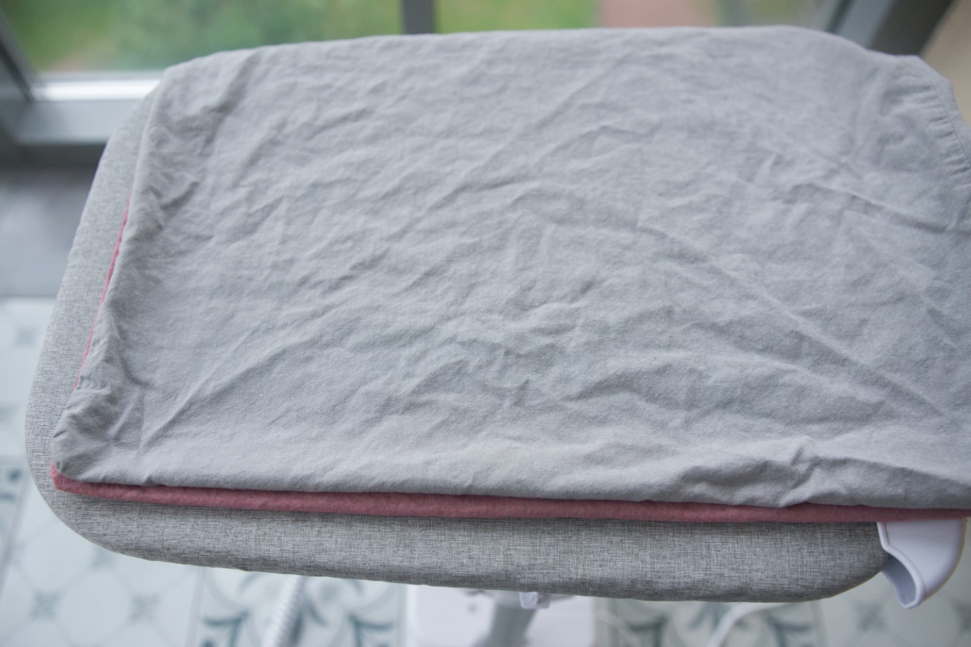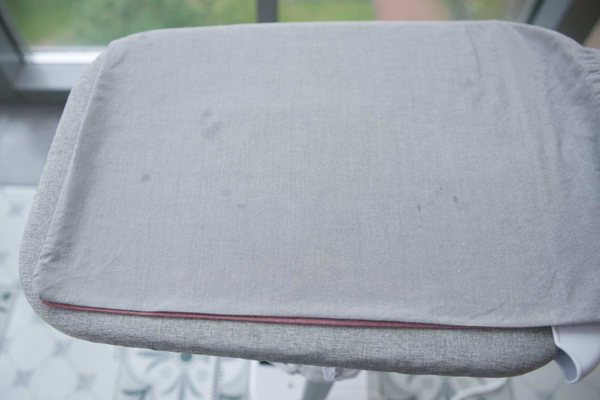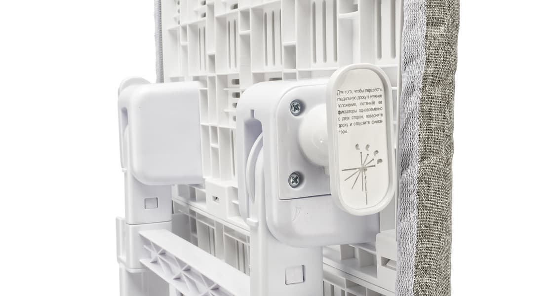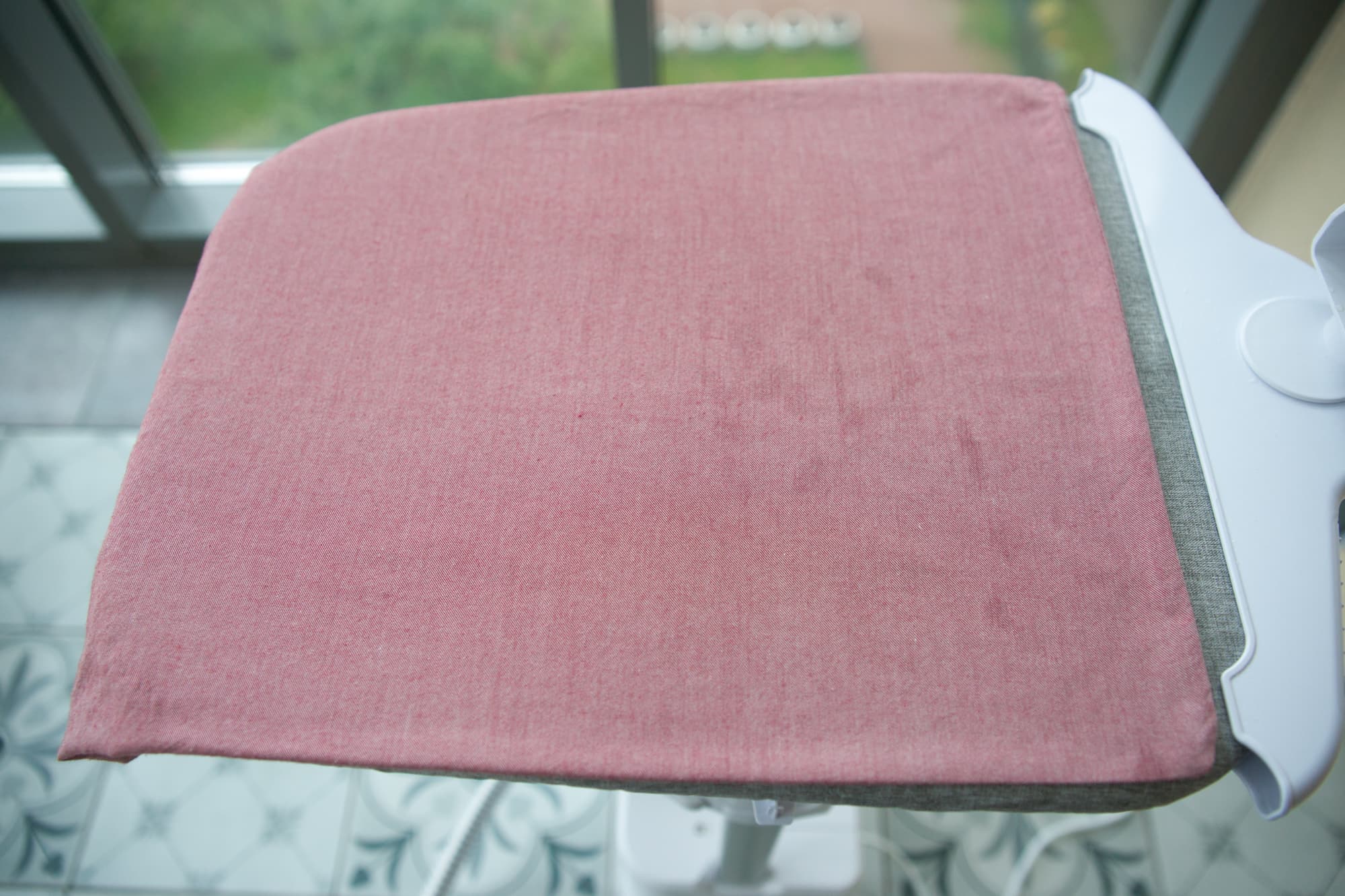 Гладильная доска размером 47×36 см имеет тонкую поролоновую подкладку и съемный чехол из прочной термоустойчивой ткани.