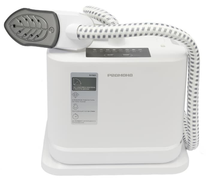 Отпариватель Redmond SV1651 — это недорогая напольная модель с 8 уровнями мощности подачи пара, рассчитанными на обработку самых разных тканей от нейлона до льна. Компактный для своей категории прибор оснащен съемным резервуаром для воды, телескопическими стойками, вешалкой и небольшой поворотной гладильной доской.