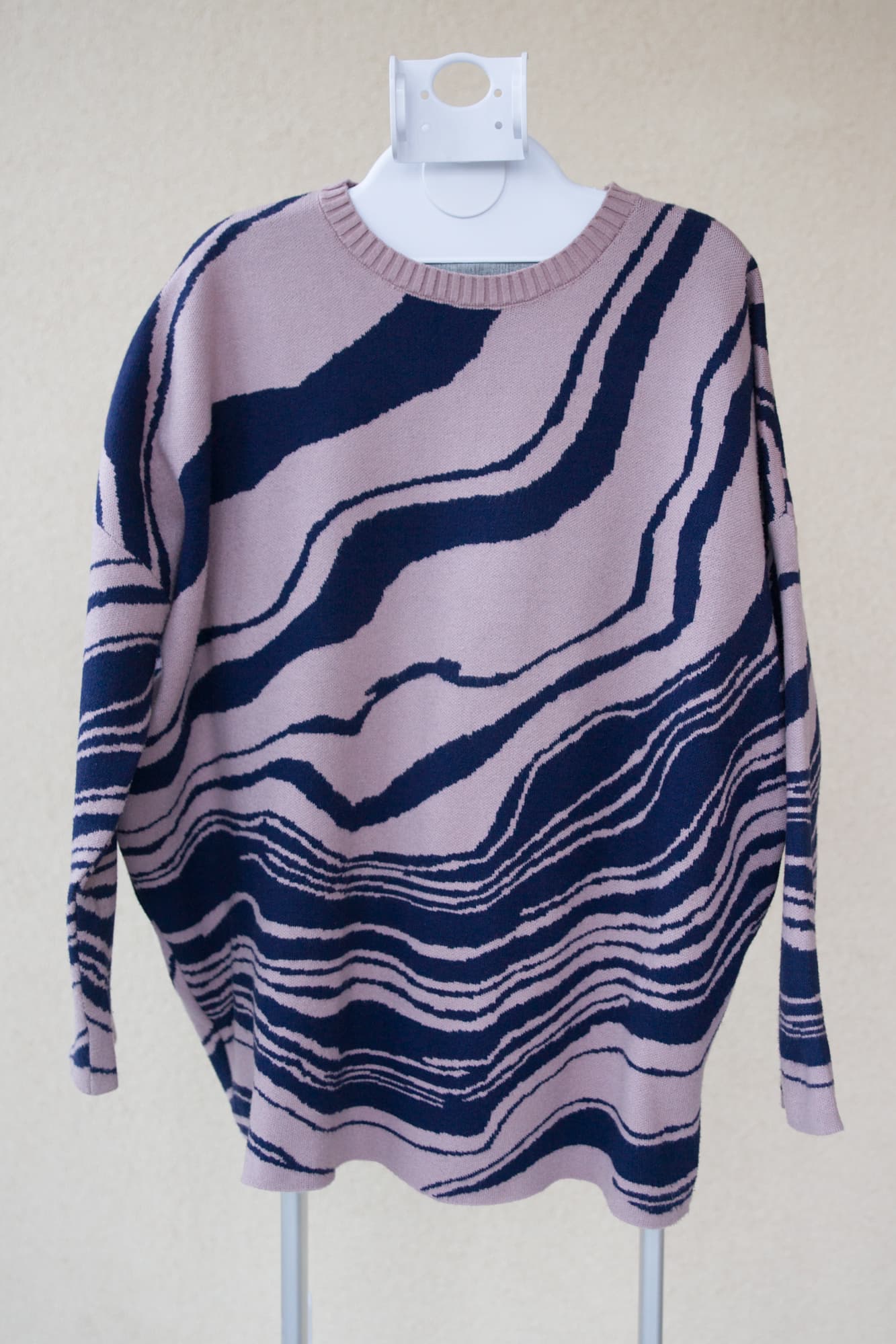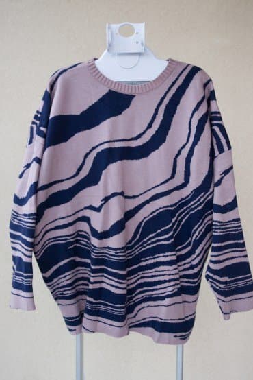 Для свитера из хлопка и акрила мы выбрали режим Смесовые. Это средний универсальный уровень мощности пара, подходящий для большинства материалов. Изделия из такого материала не рекомендуется гладить, поэтому мы отпаривали наш свитер на весу. Пар оказался достаточно мощным, но не чрезмерным, так что мы спокойно водили утюжком вплотную, не боясь деформировать волокна. На обработку с двух сторон было потрачено около 4-5 минут.