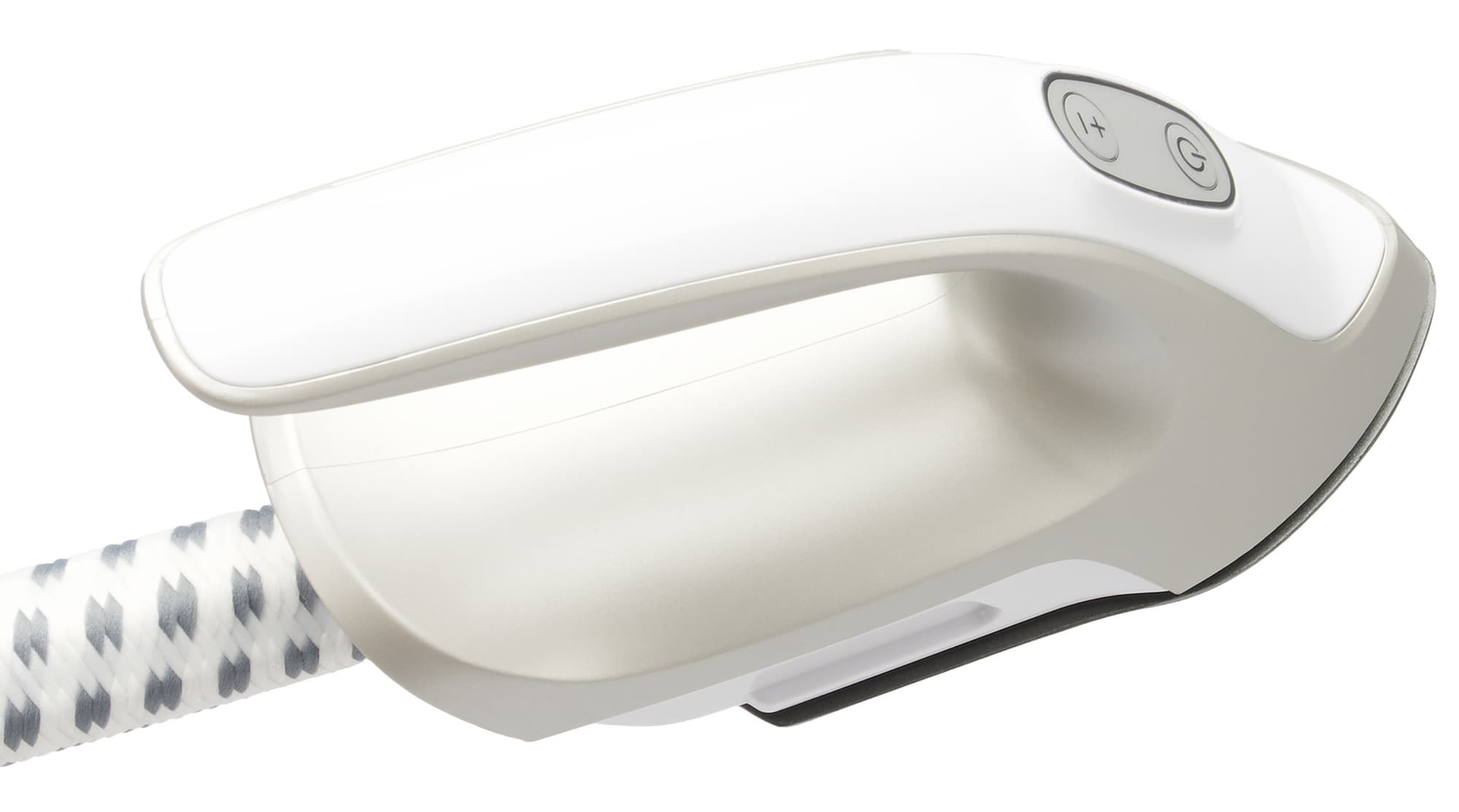 Управлять отпаривателем можно парой кнопок, размещенных на корпусе базы, либо парой кнопок, что находятся на внешней поверхности утюжка. Они дублируют друг друга.