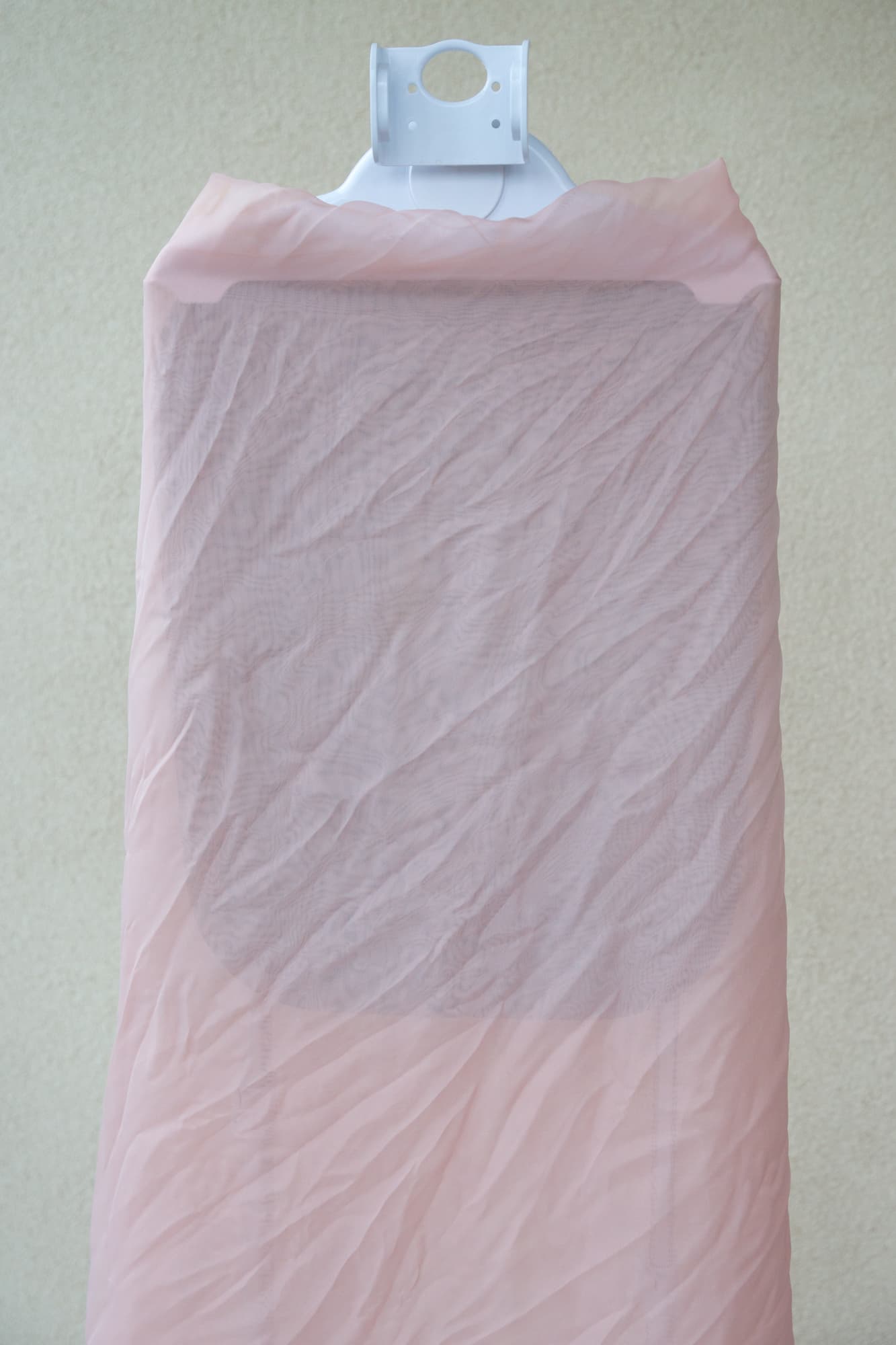 Напоследок проверили работу отпаривателя в деликатных режимах. Отрез органзы предварительно был прилично измят при стирке и в скрученном виде пару дней сох на батарее.