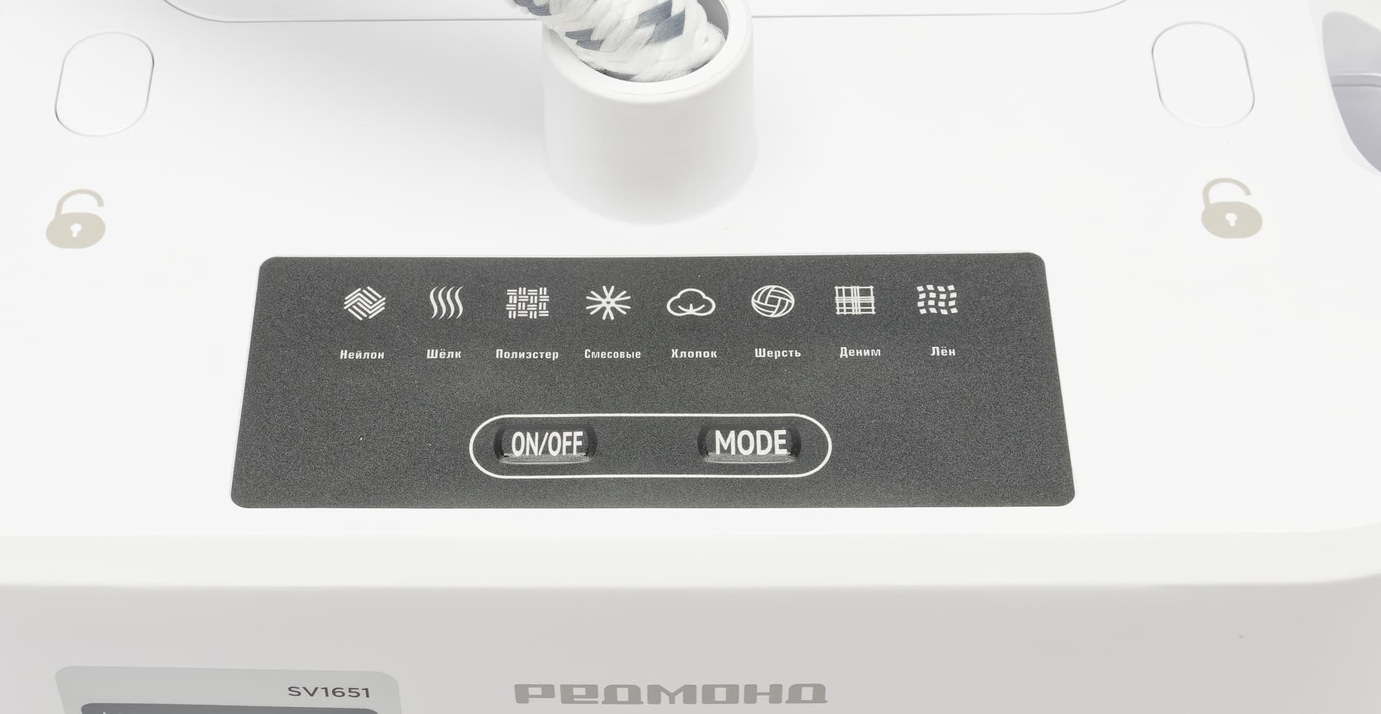 Кнопка со знакомым всем рисунком запускает или останавливает работу устройства, соседняя — Выбор температурного режима, поочередно переключает уровни подачи пара. Всего их восемь: Нейлон, Полиэстер, Комбинированная ткань, Хлопок, Шелк, Джинсовая ткань, Шерсть и Лен.