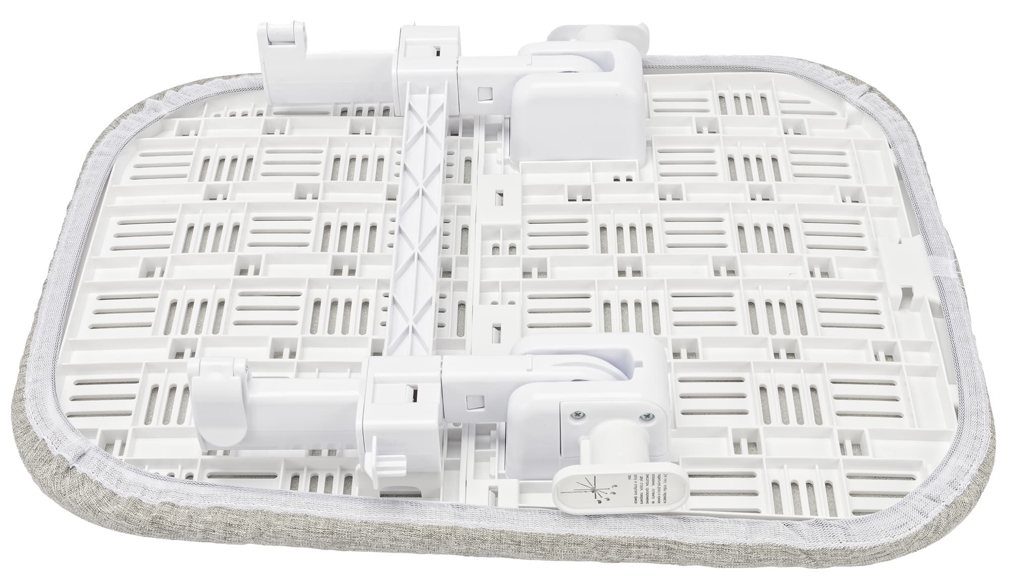 Пластиковые фиксаторы стоек легко открываются и закрываются, позволяя устанавливать высоту конструкции в пределах от 100 до 150 см. Защелки крепко сжимают металлические трубки на необходимой высоте, в базе стойки держатся плотно, не болтаются. Чтобы вытащить их, достаточно потянуть конструкцию стойки вверх, усилий для этого прикладывать не требуется.