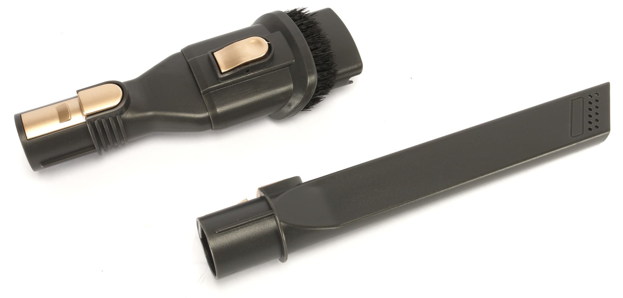 К пылесосу прилагаются также три немоторизованные насадки. Конструкция двух из них нам хорошо знакома: это широкая насадка-щетка «2 в 1» и щелевое сопло.